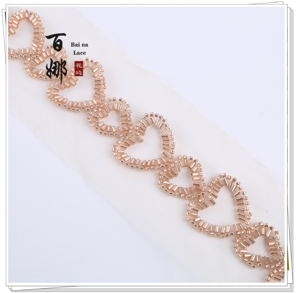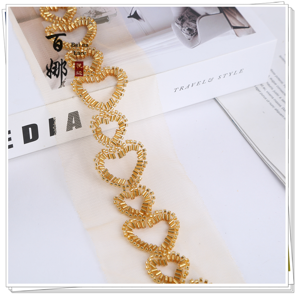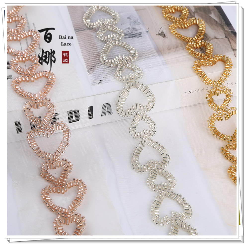 Product Name: Beading Lace Handcraft DIY Material Hanfu Wedding Dress Weaving Band BNH3428 Heart-shaped Embellished Edge