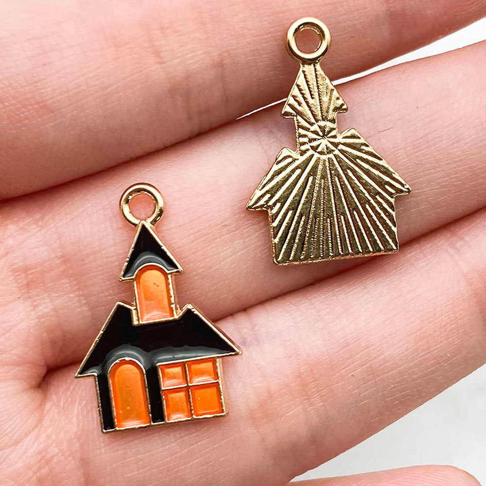 14002-black and orange color dripping zinc alloy halloween castle 15x21-1g