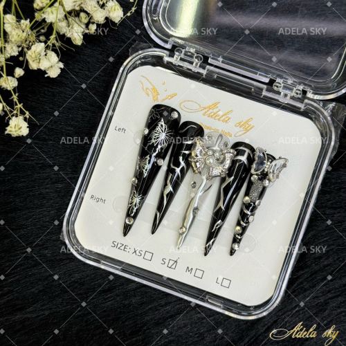 dark black sweet cool european and american long pointed three-dimensional bow zircon butterfly heavy industry style handmade wear armor can be repeated 中文版