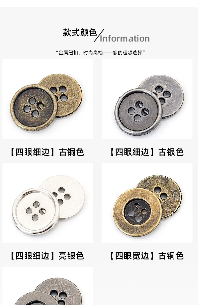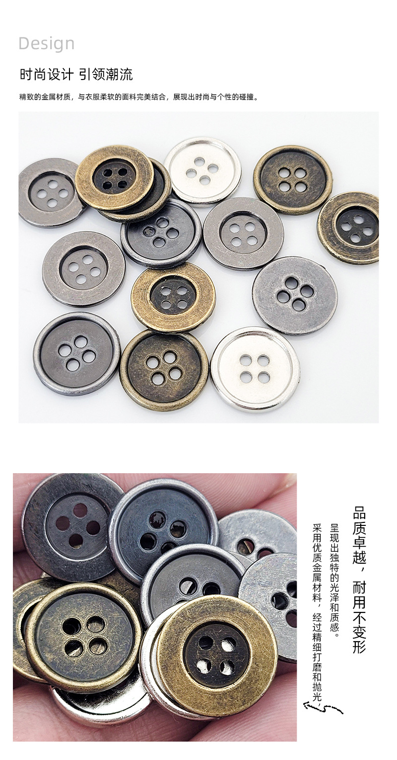 bronze ancient silver shirt small buttons round wide-brimmed suit cufflinks wholesale in stock four-eye thin edges metal buttons 中文版
