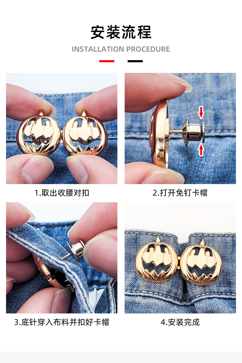 a pair of buckles detachable nail-free buttons jeans waist adjustment big change small waist slimming artifact pumpkin lamp belt buckle 中文版