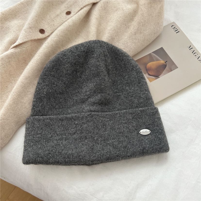 High-quality face-reducing rabbit fur hat for women, winter ear protection knitted wool cap, versatile pure color, warm woolen headband