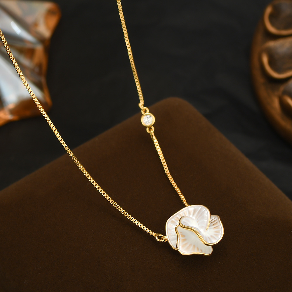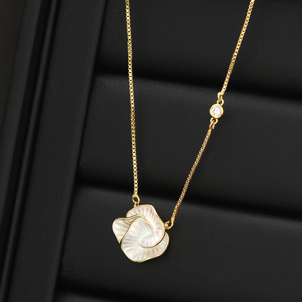 korean style fashion new drop oil camellia clavicle chain necklace female real gold plating all-matching graceful necklace necklace tide 中文版