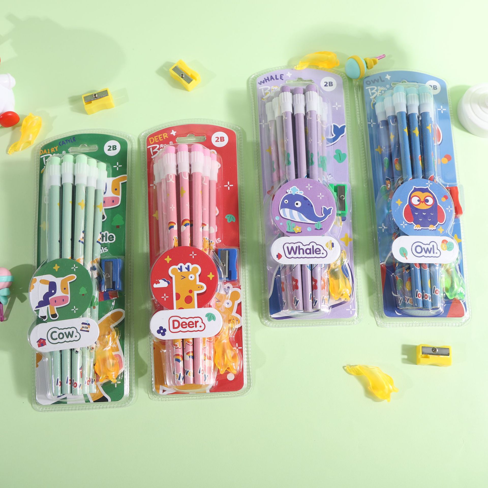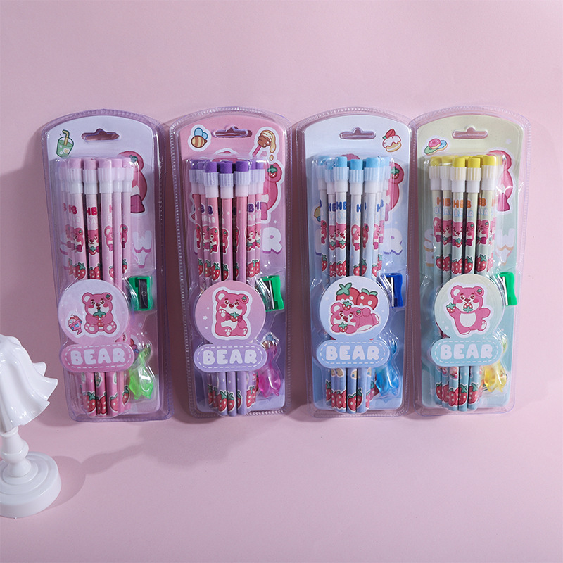 Cartoon Pencil Suit Strawberry Bear Big Eraser Pencil with Pen Penknife Pencil Eraser Pencil Grip Combination Batch 中文版