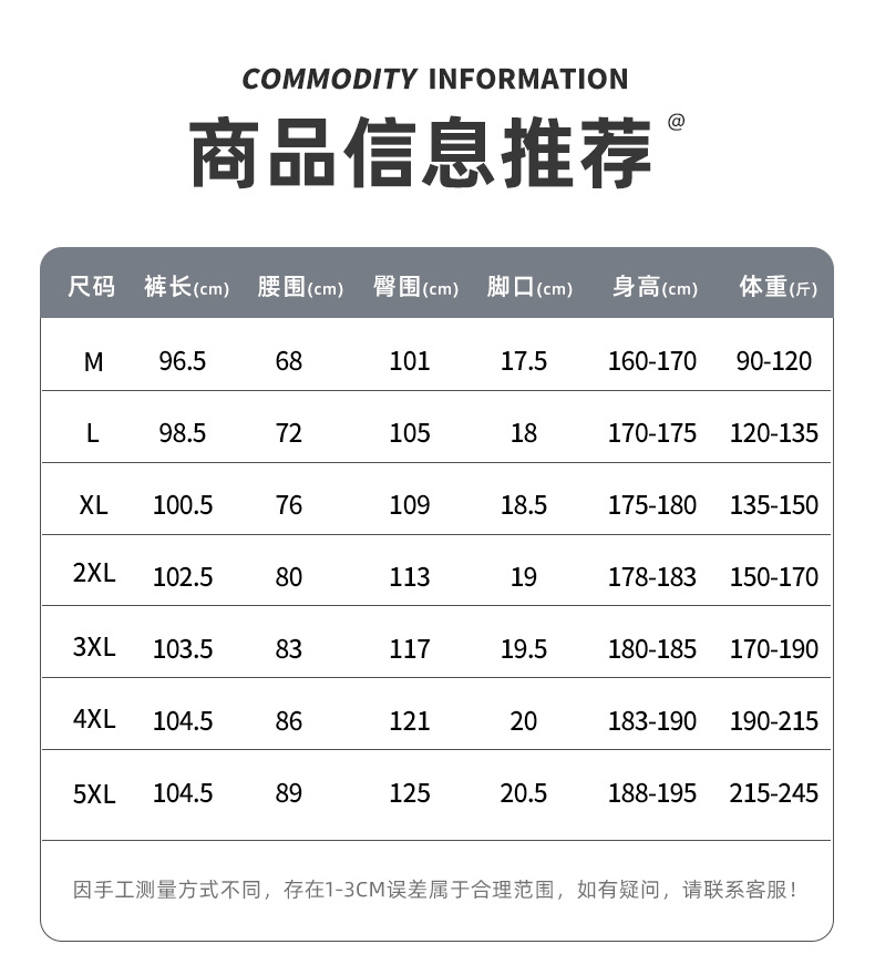 | 2xl pants length 102.5cm recommended about 77.50 kg-87.50 kg | ¥81.94 | 1129 piece available |