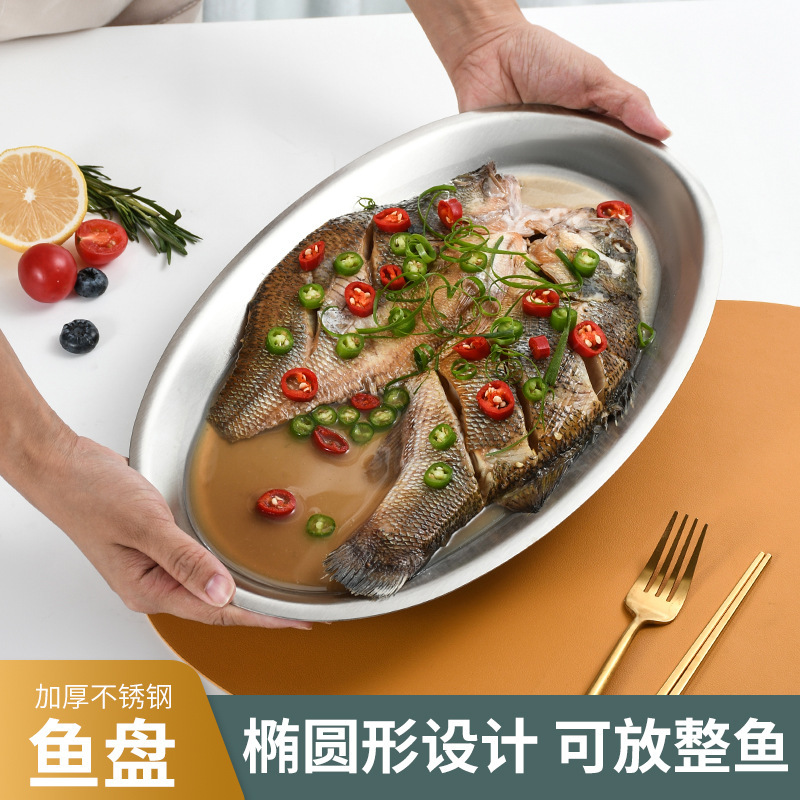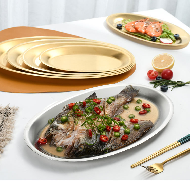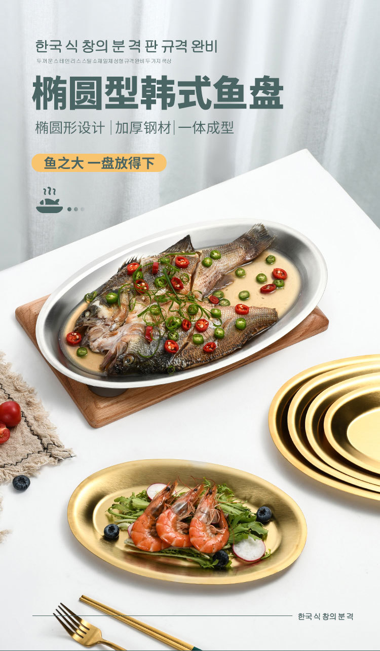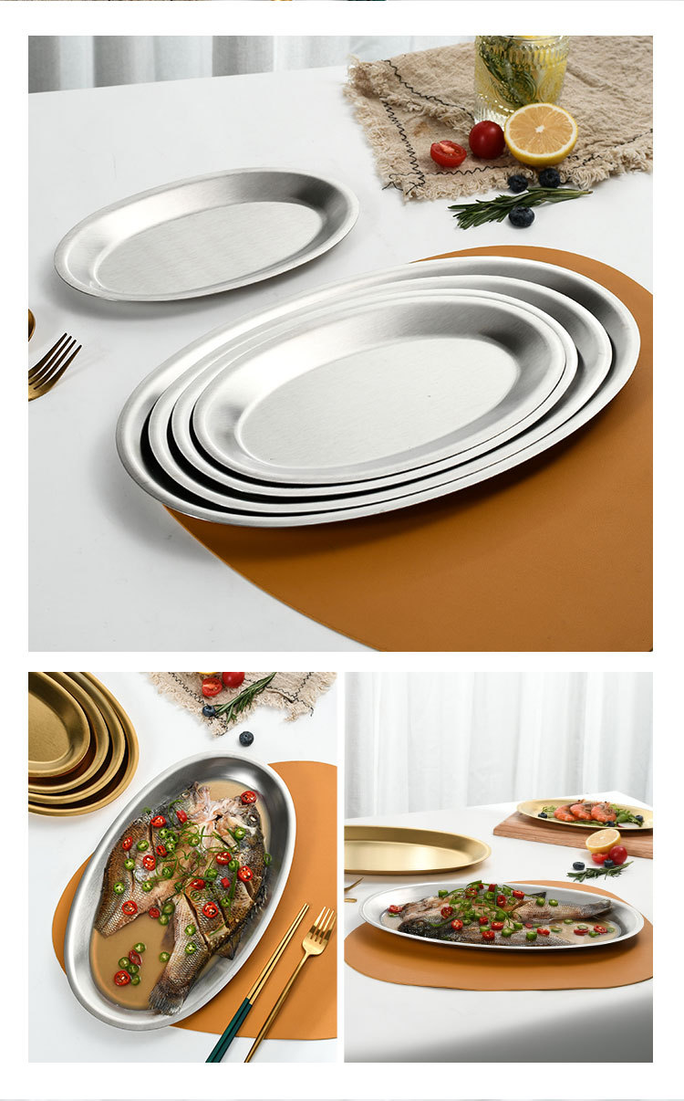 korean style stainless steel fish dish oval plate fish steaming plate golden creative egg tray barbecue plate dinner plate tray 中文版