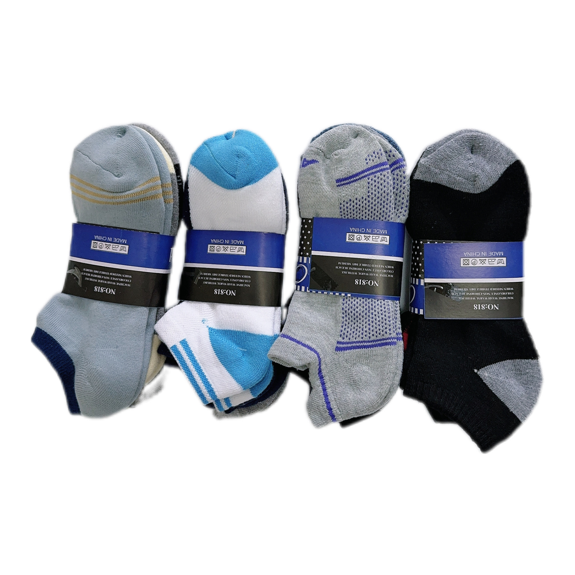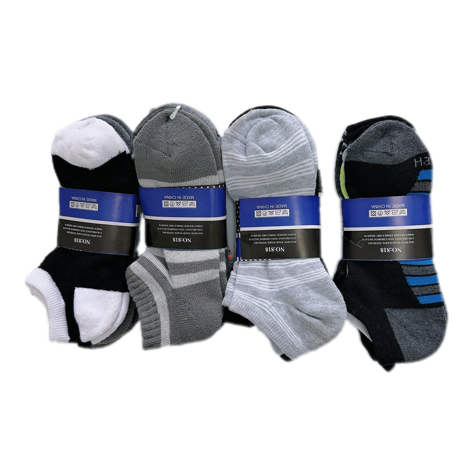 Socks without packaging, no hanging card, and product instructions