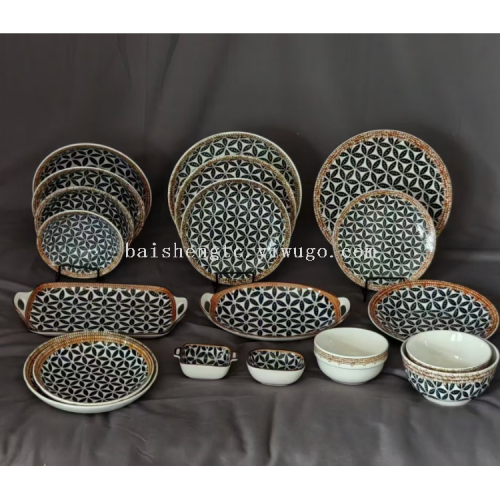 ceramic ovenware ceramic square plate disc ceramic bowl rattan flowers like brocade series pattern