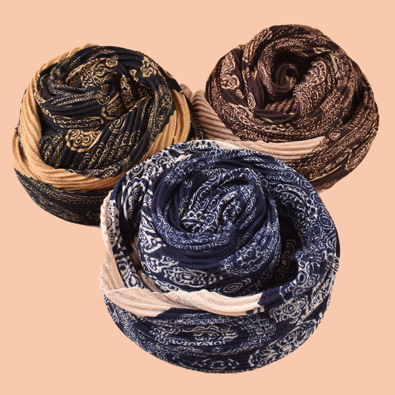autumn and winter new size paisley cotton and linen scarf 90 crumpled large kerchief women's scarf foreign trade wholesale