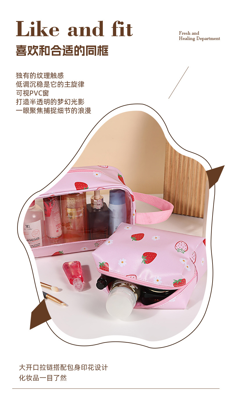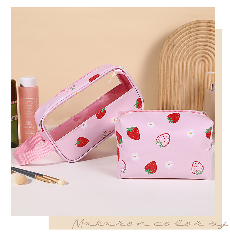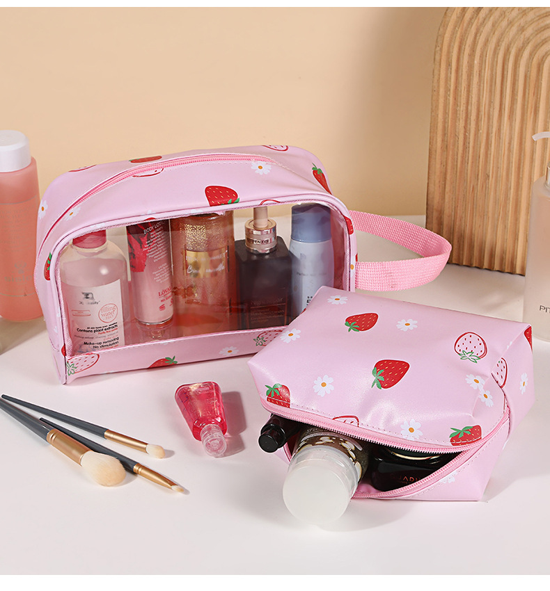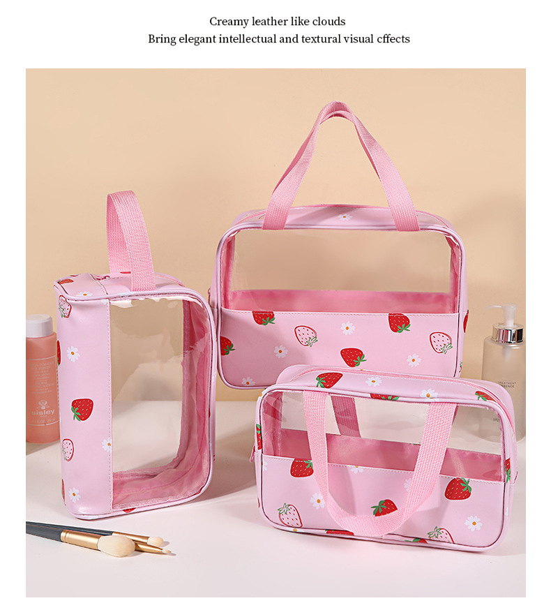stitching transparent cosmetic bag sweet girly strawberry printing wash bag waterproof large-capacity cosmetics storage bag