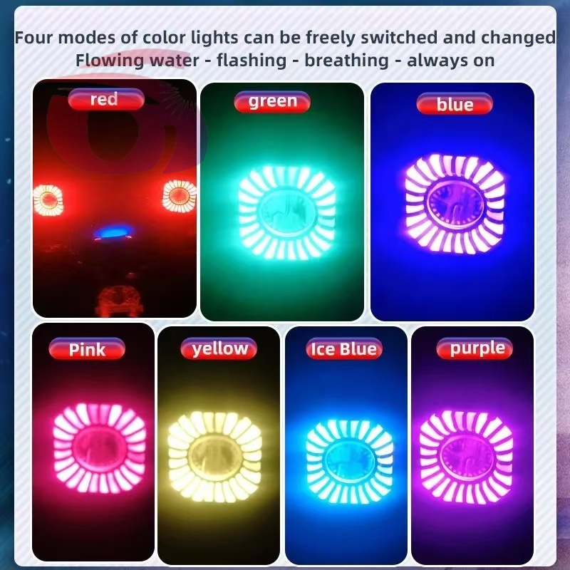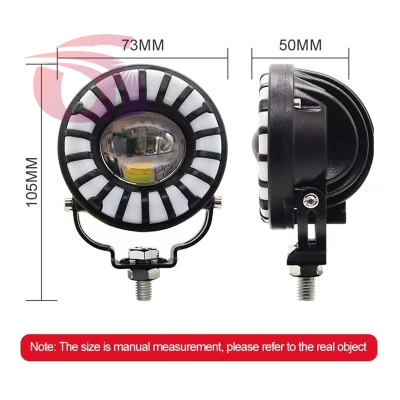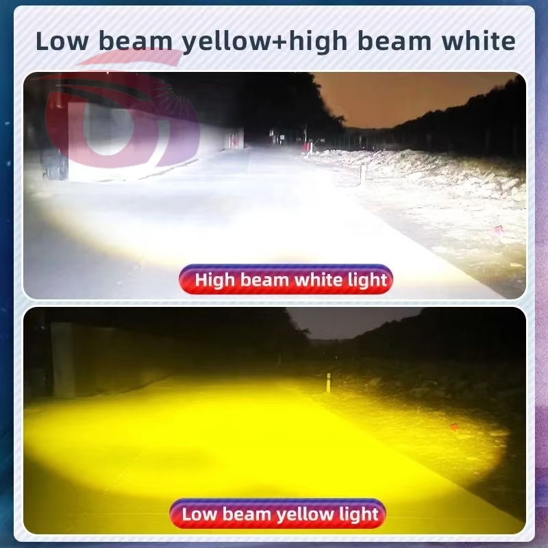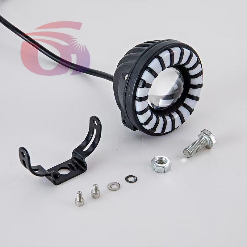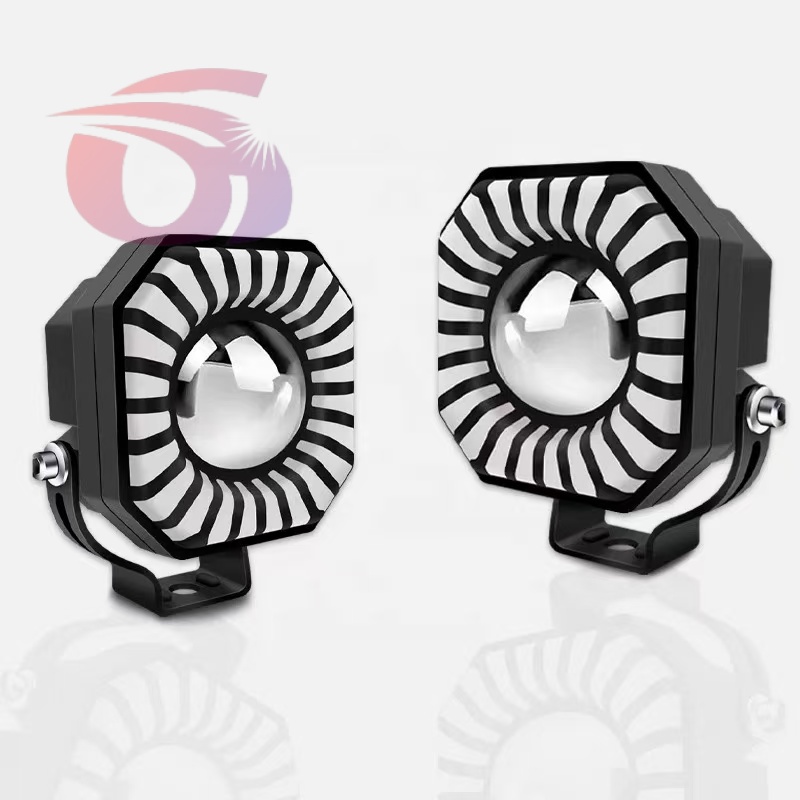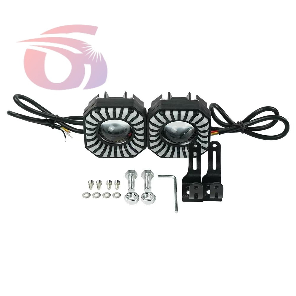 Car LED lights of motorcycle, colorful spotlights, round yellow and white spotlights.
