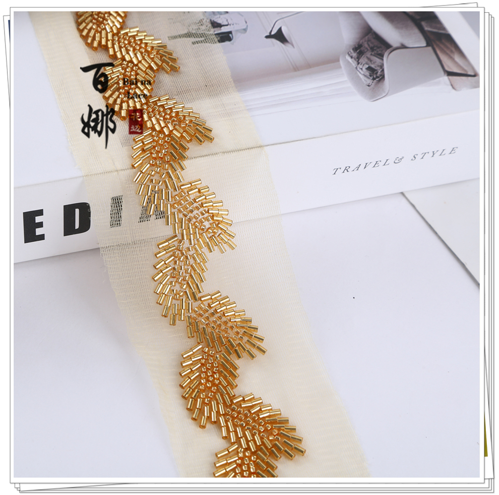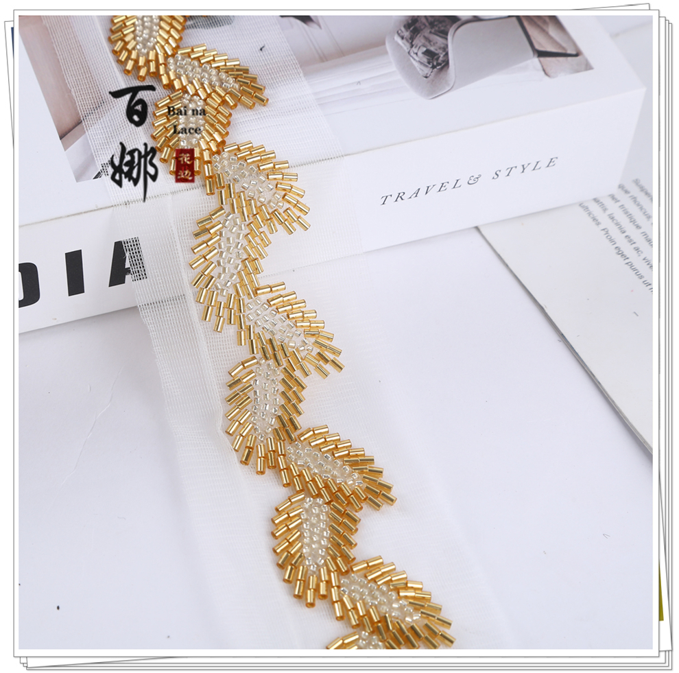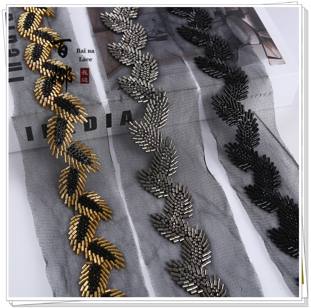 Product Name: Cross-border Vintage Handmade Beaded Tubes, Sequins Lace Edging, DIY Lace Barcode Clothing Accessories, Wholesale