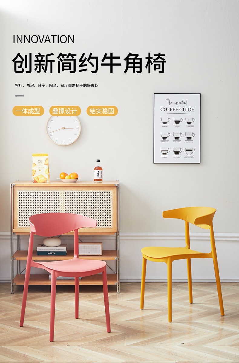 nordic horn plastic chair armchair dining table adult chair household plastic thickened cosmetic chair 中文版
