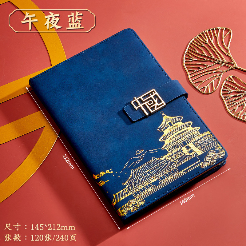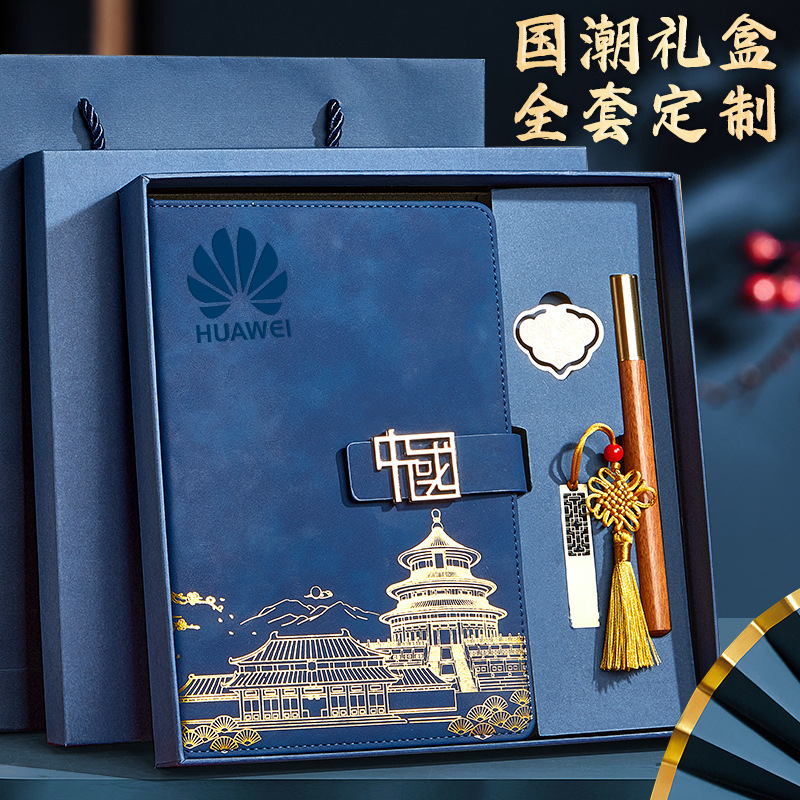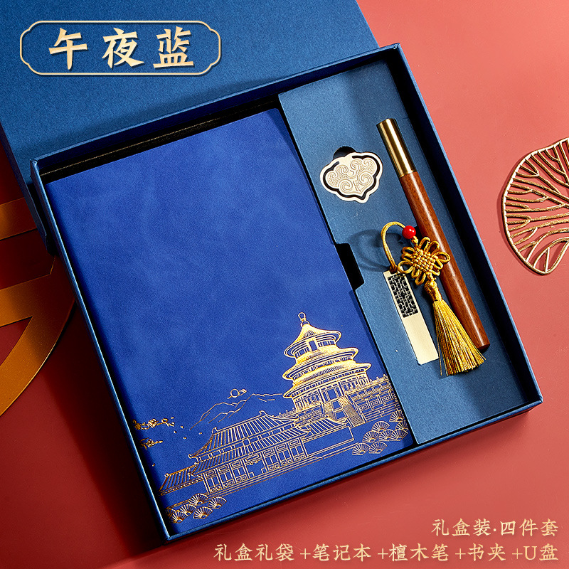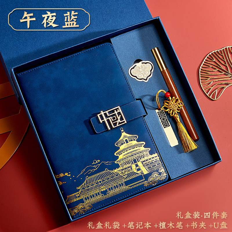 blue-a5 intimate book-chinese buckle-gift box-bookmark-pen-u disk