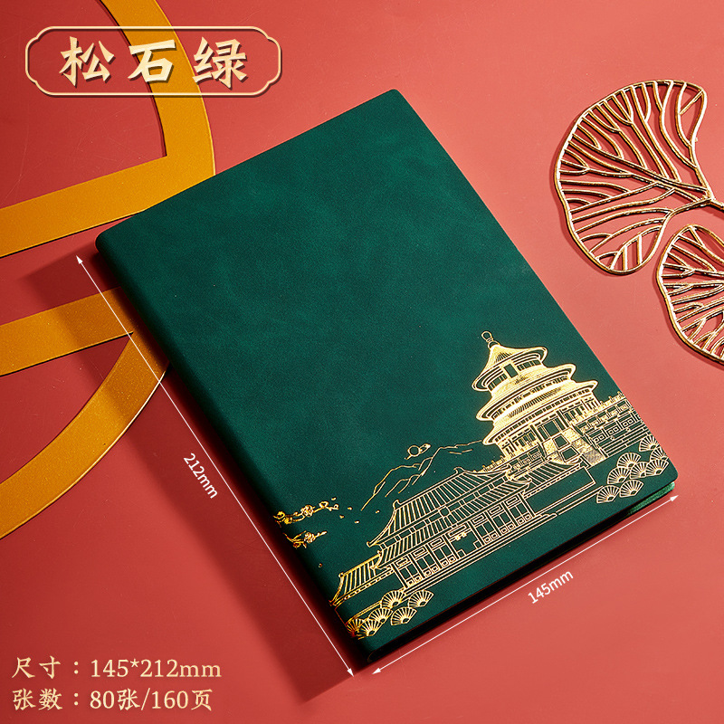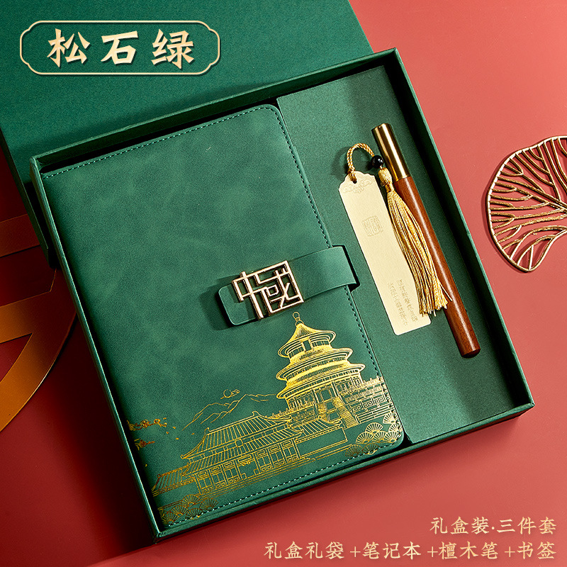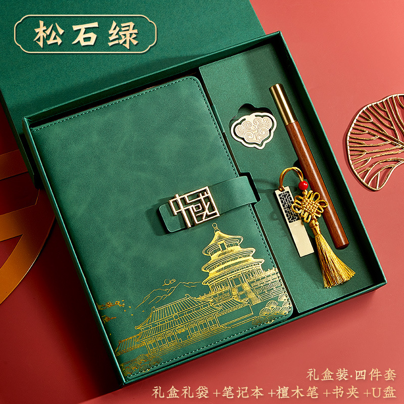 green-a5 intimate book-chinese buckle-gift box-bookmark-pen-u disk