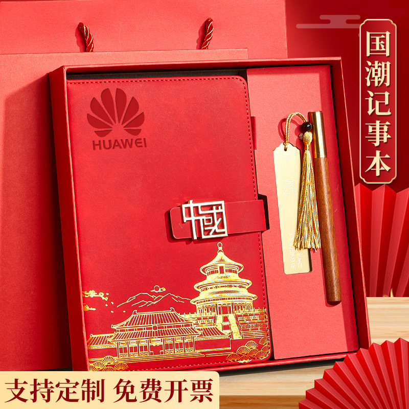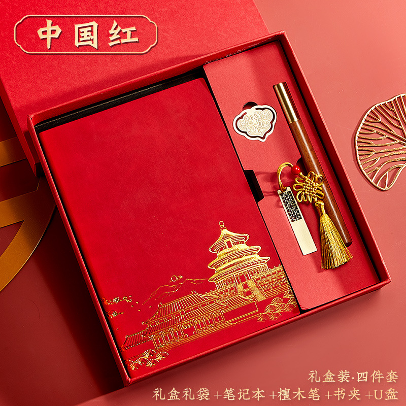 red-a5 intimate book-chinese buckle-gift box-bookmark-pen-u disk