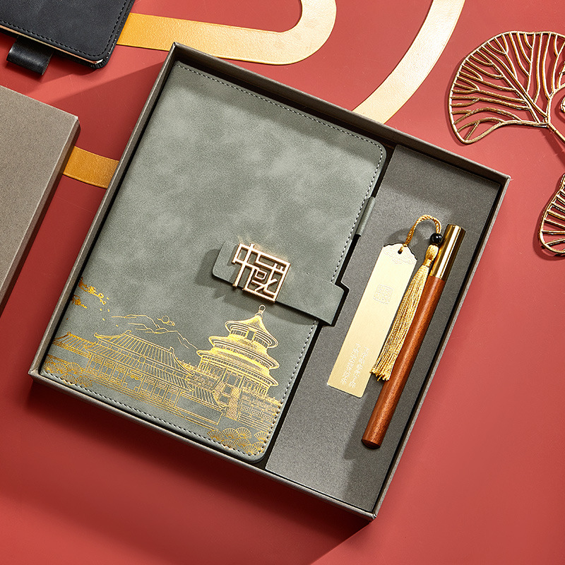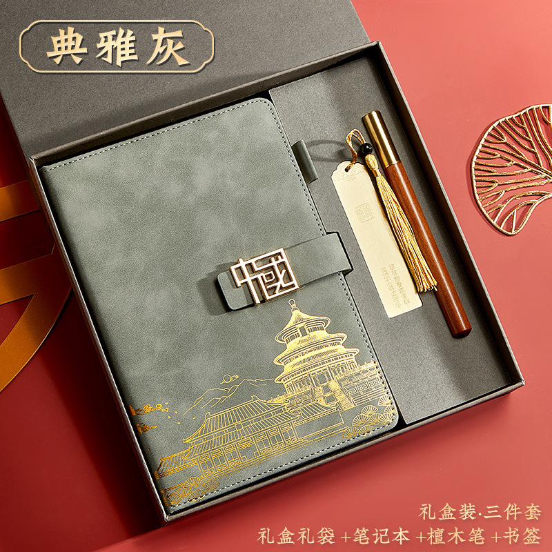 gray-a5 intimate book-chinese buckle-gift box-bookmark-pen
