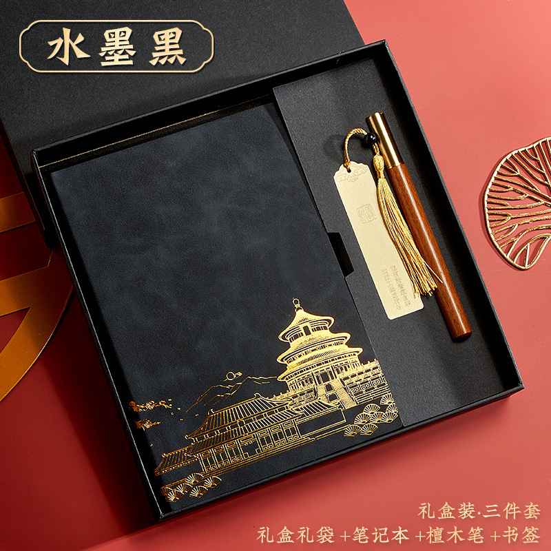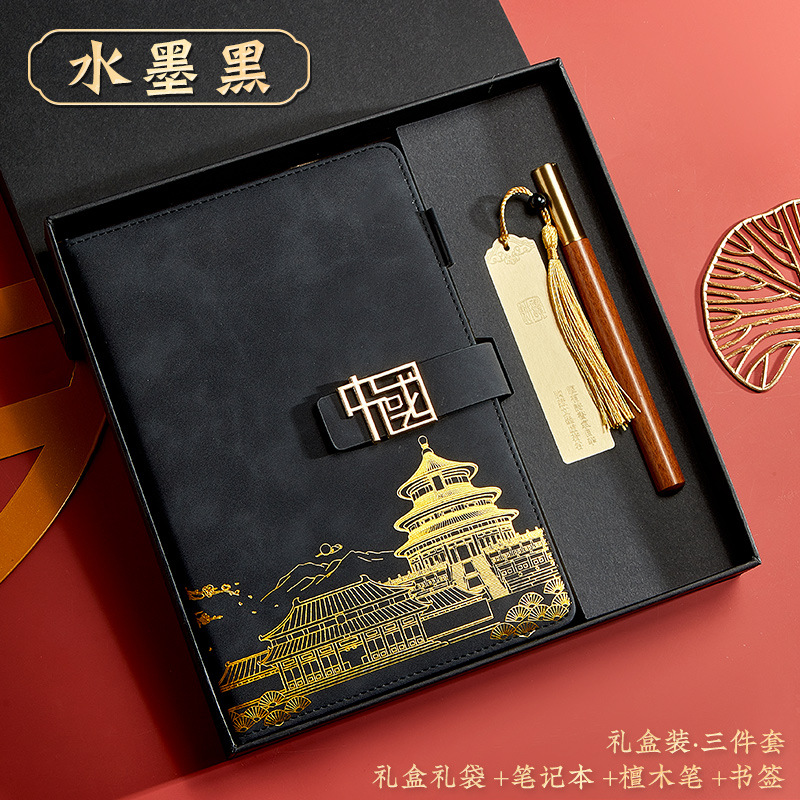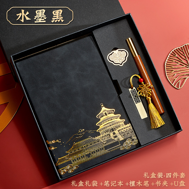black-a5 intimate book-chinese buckle-gift box-bookmark-pen-u disk