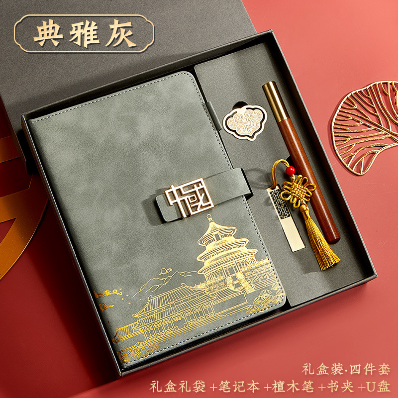 gray-a5 intimate book-chinese buckle-gift box-bookmark-pen-u disk