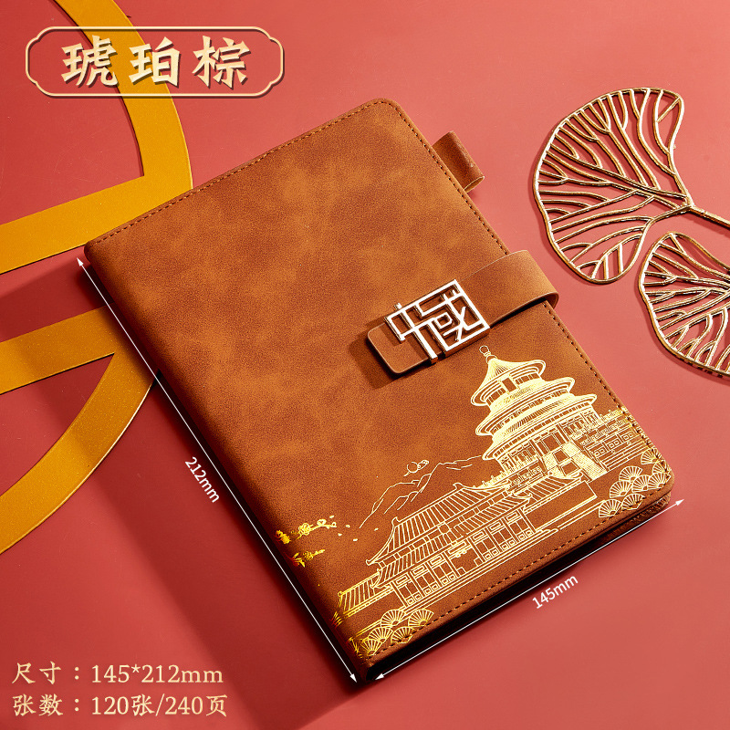 brown-a5 intimate book-chinese buckle-gift box-bookmark-pen