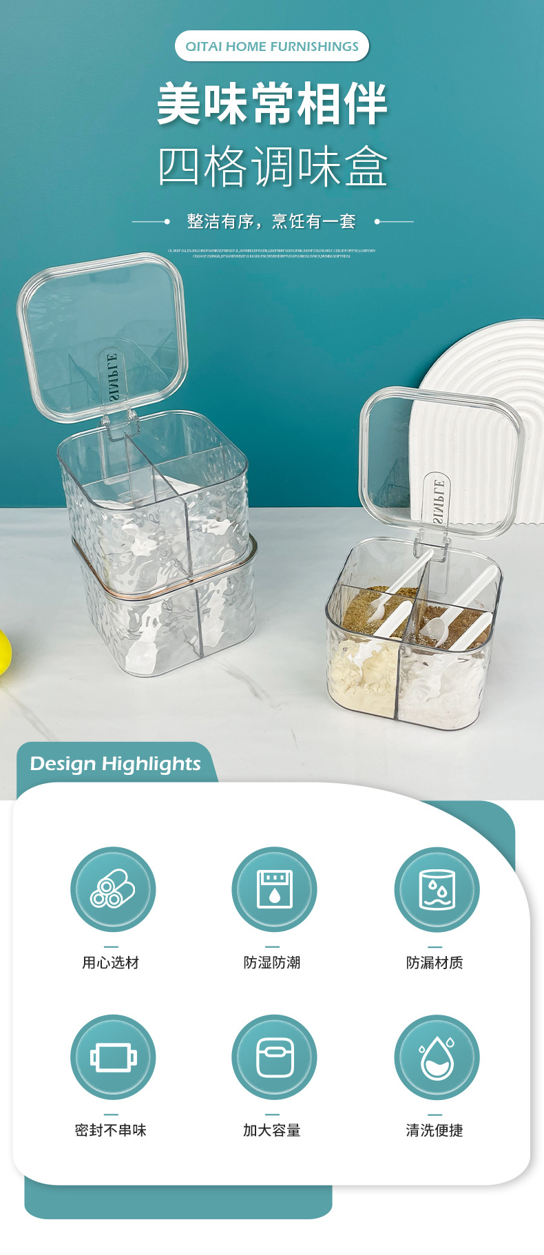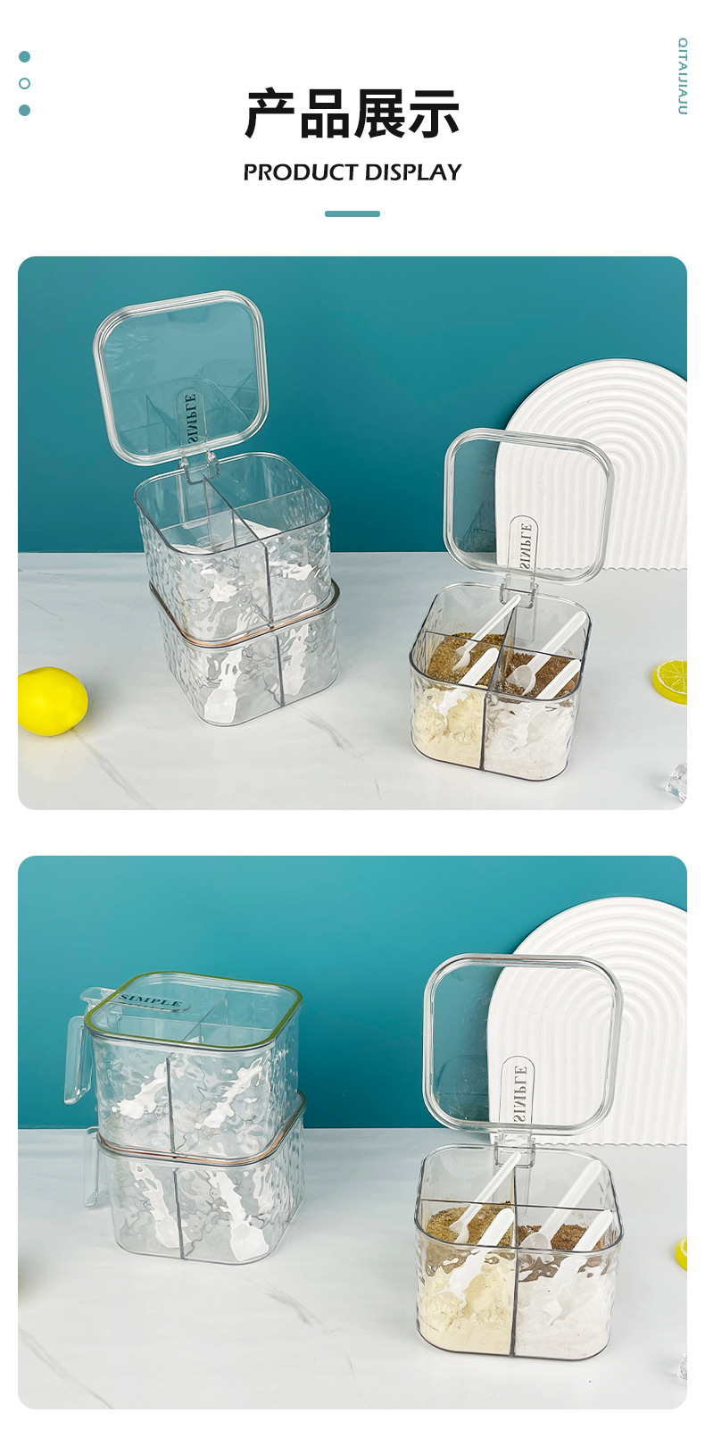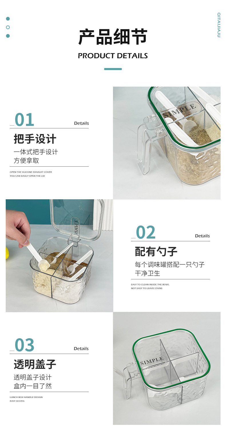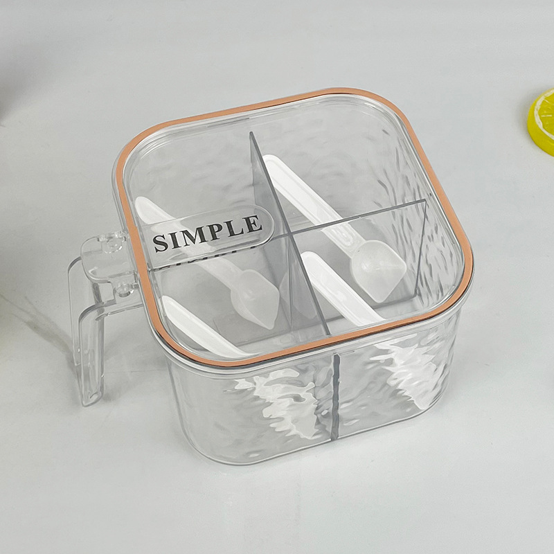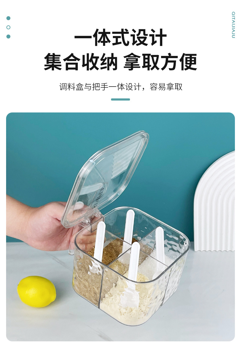 new glacier pattern four-compartment condiment dispenser household seasoning msg/seasoning can kitchen spice jar storage box 中文版