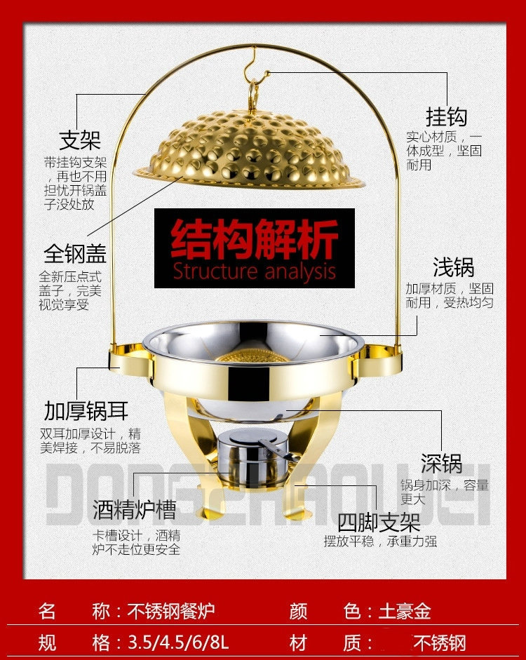 All brand buffet stoves are manufactured with stainless steel, ensuring the quality of the products! The new gold-plated stoves are even more elegant and beautiful.