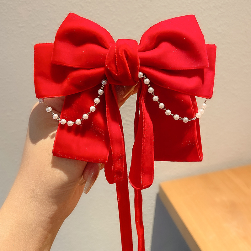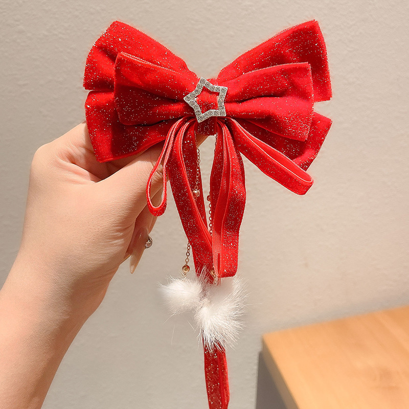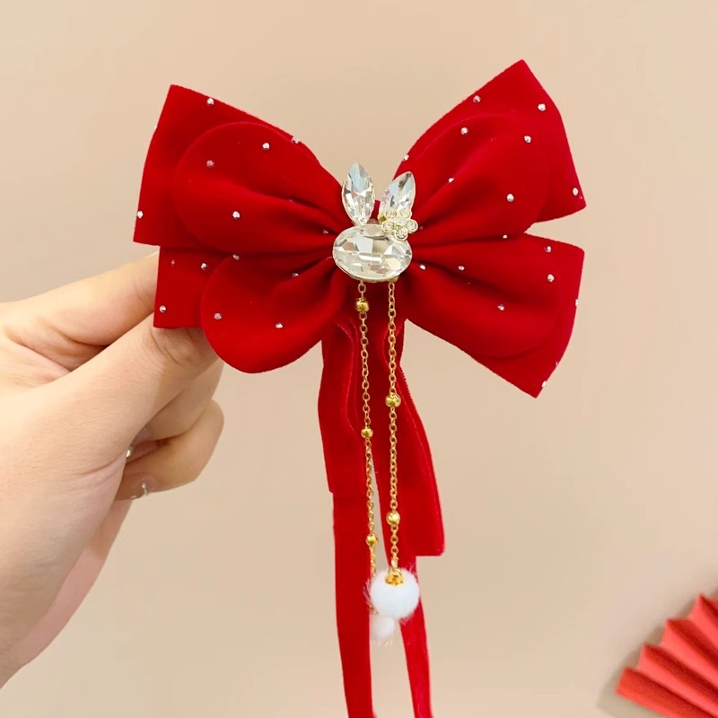 7#红色蝴蝶结飘带发夹...