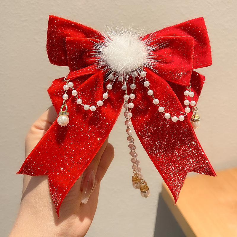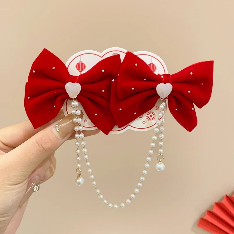 9#红白珠珠铃铛发夹...