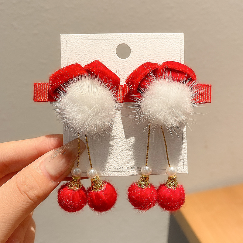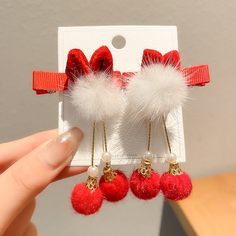 18#闪红白毛球蝴蝶结鸭嘴夹...