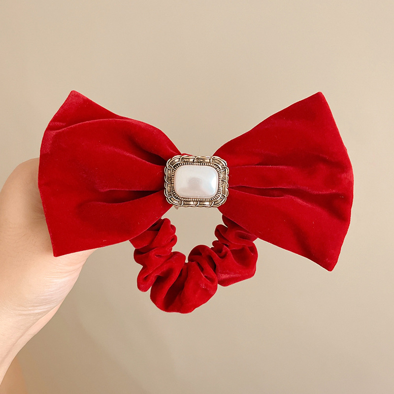 5#珍珠丝绒发圈...