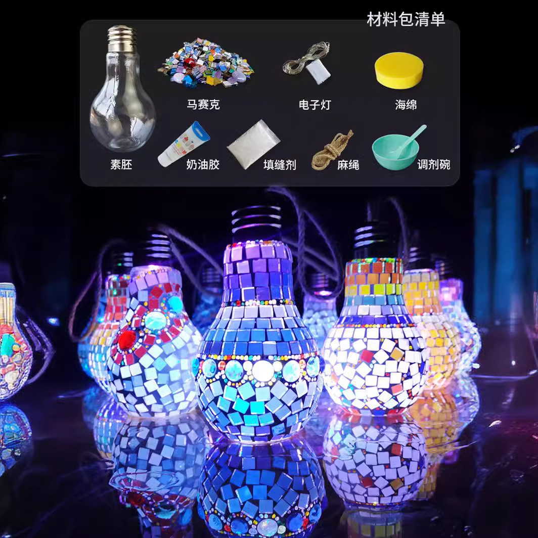mosaic diy bulb candlestick material package handmade parent-child children educational toys crystal glass luminous gift 中文版
