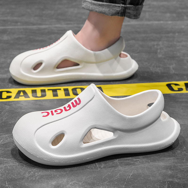 summer new men's hole shoes lightweight outer wear shit feeling sandals closed toe beach slippers