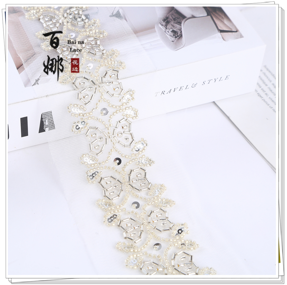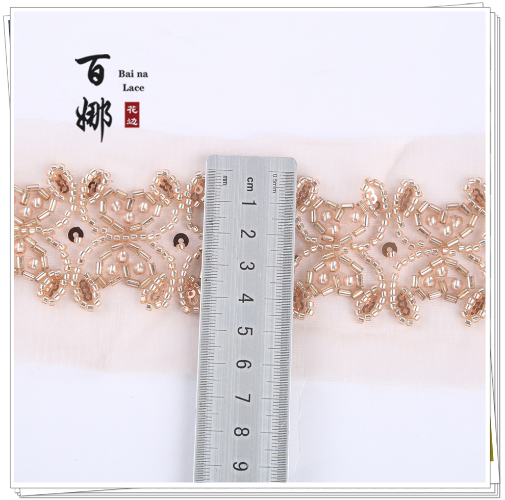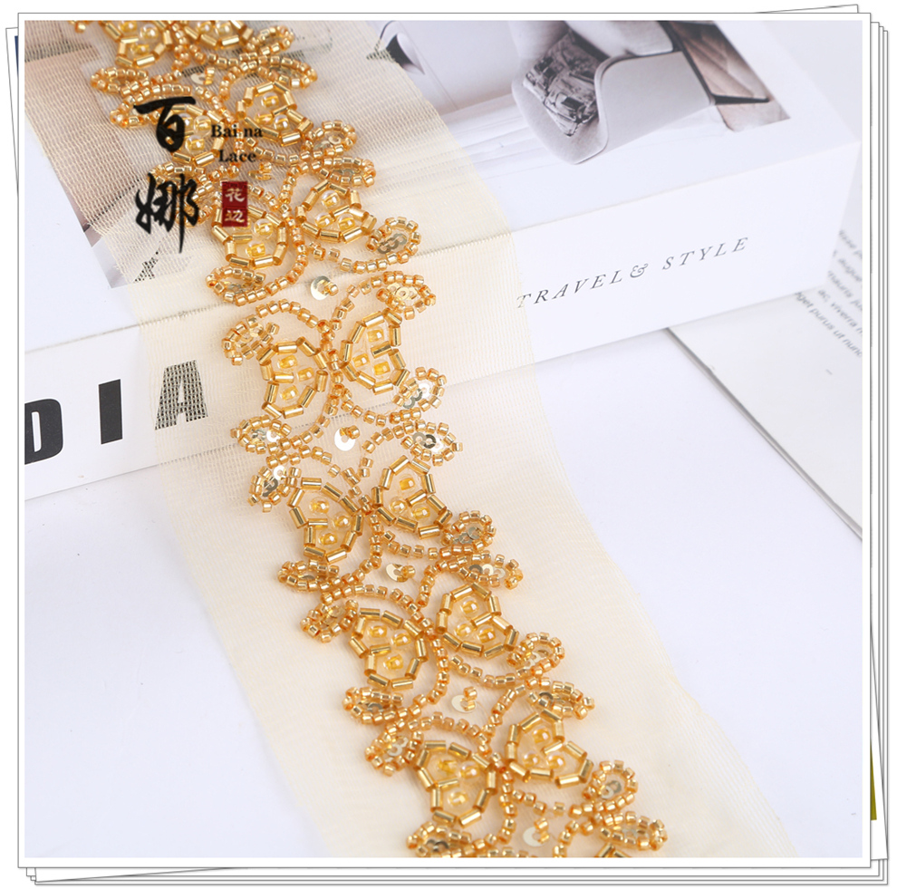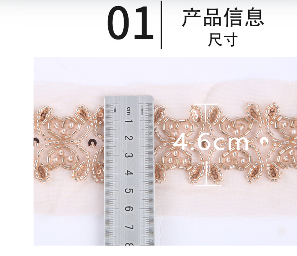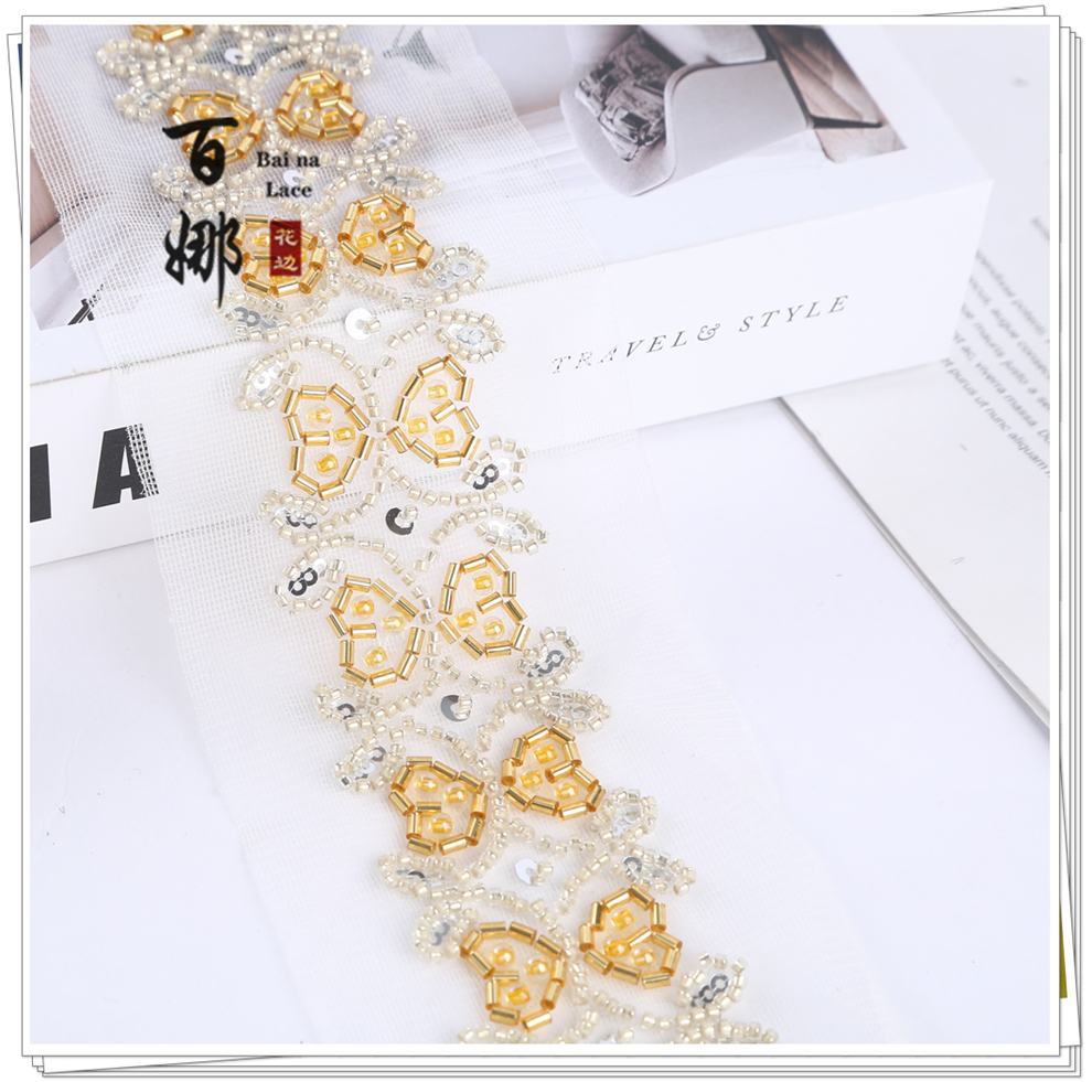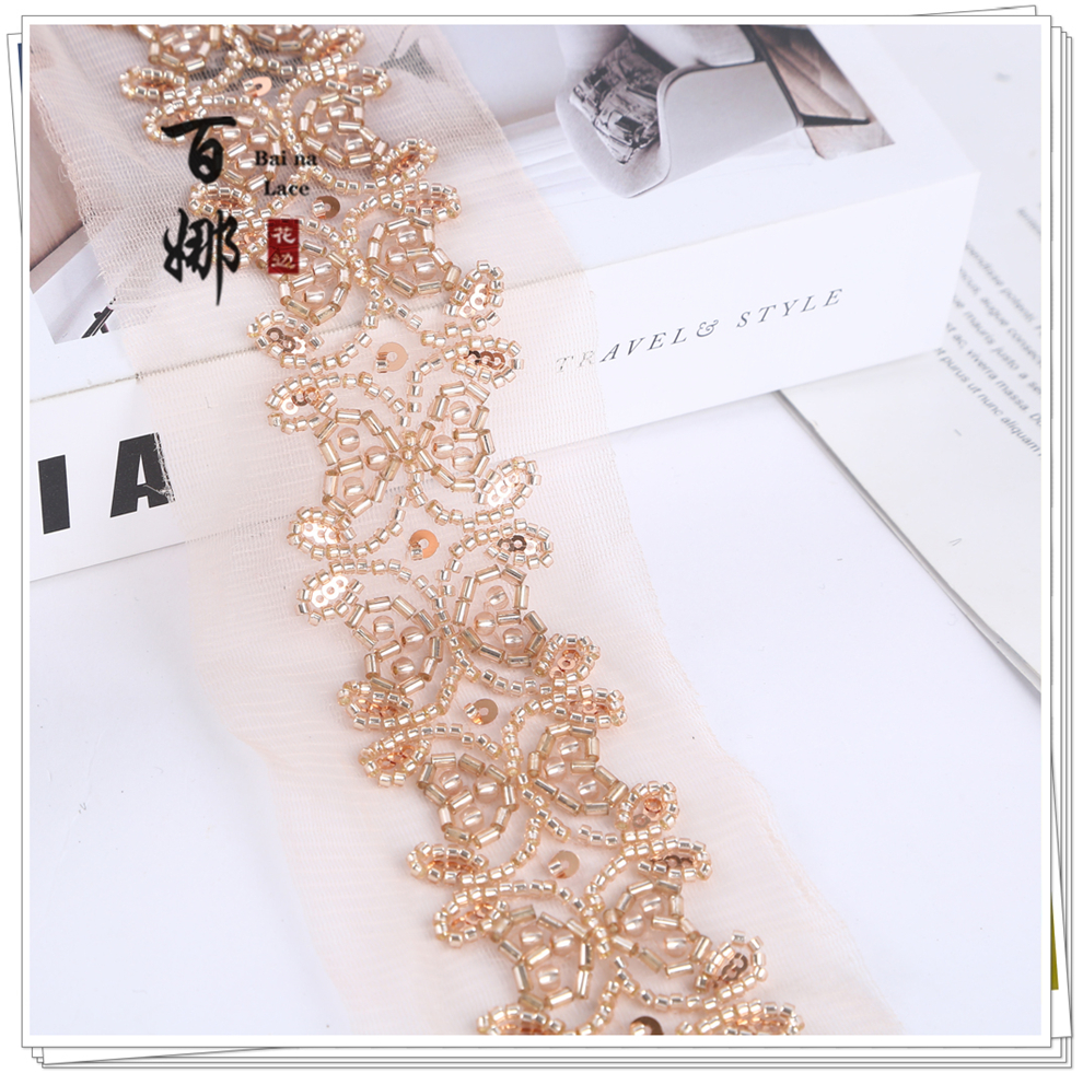 Product Name: 4.6 cm Wide Beaded Tube with Dense Lace Weaving - Wholesale of Garment and Wedding Dress Decorative Netting Lace Trim