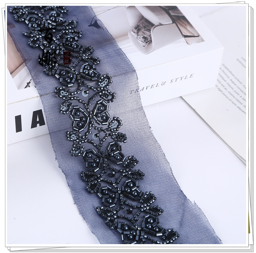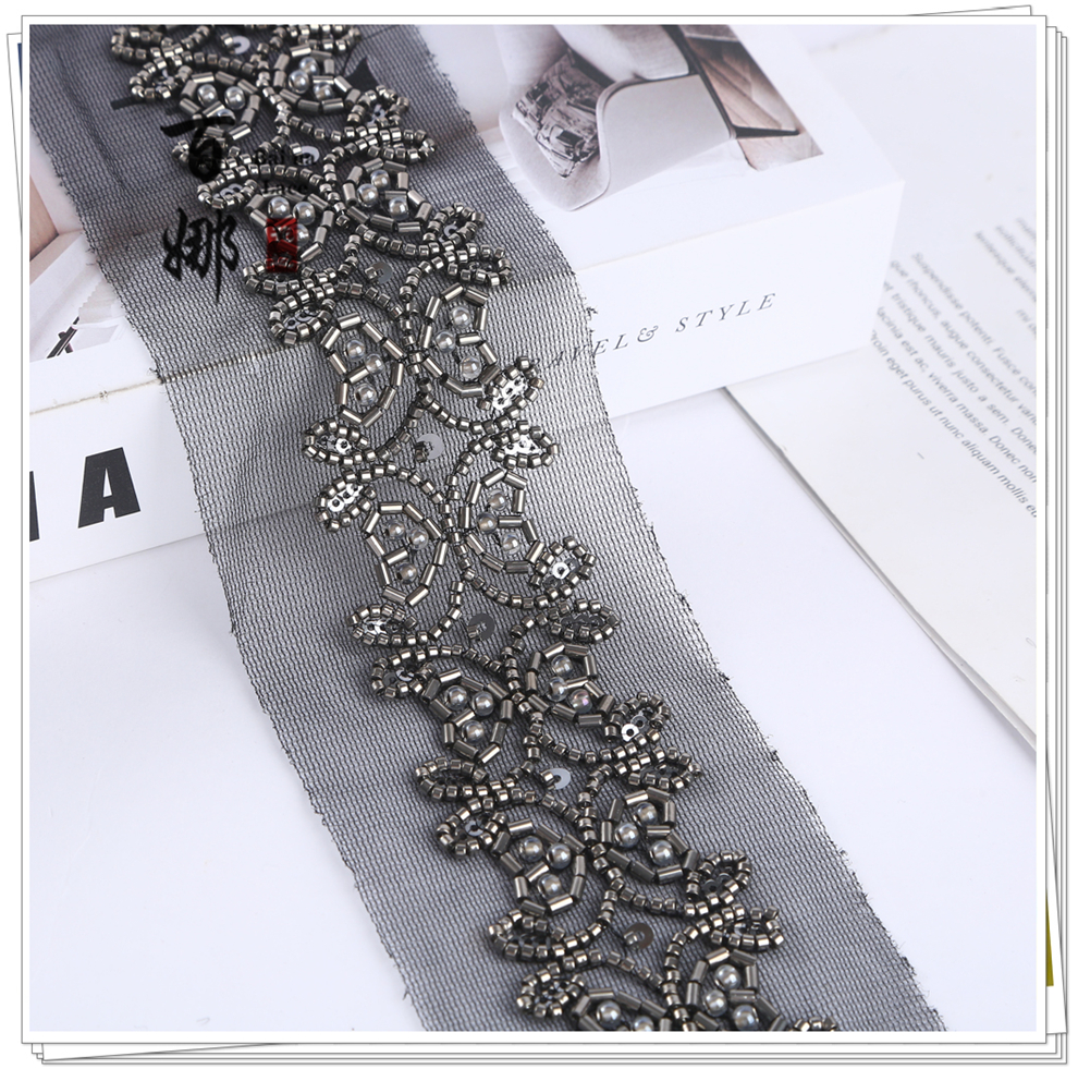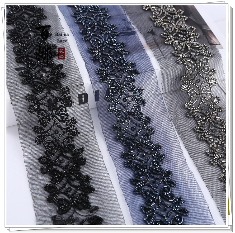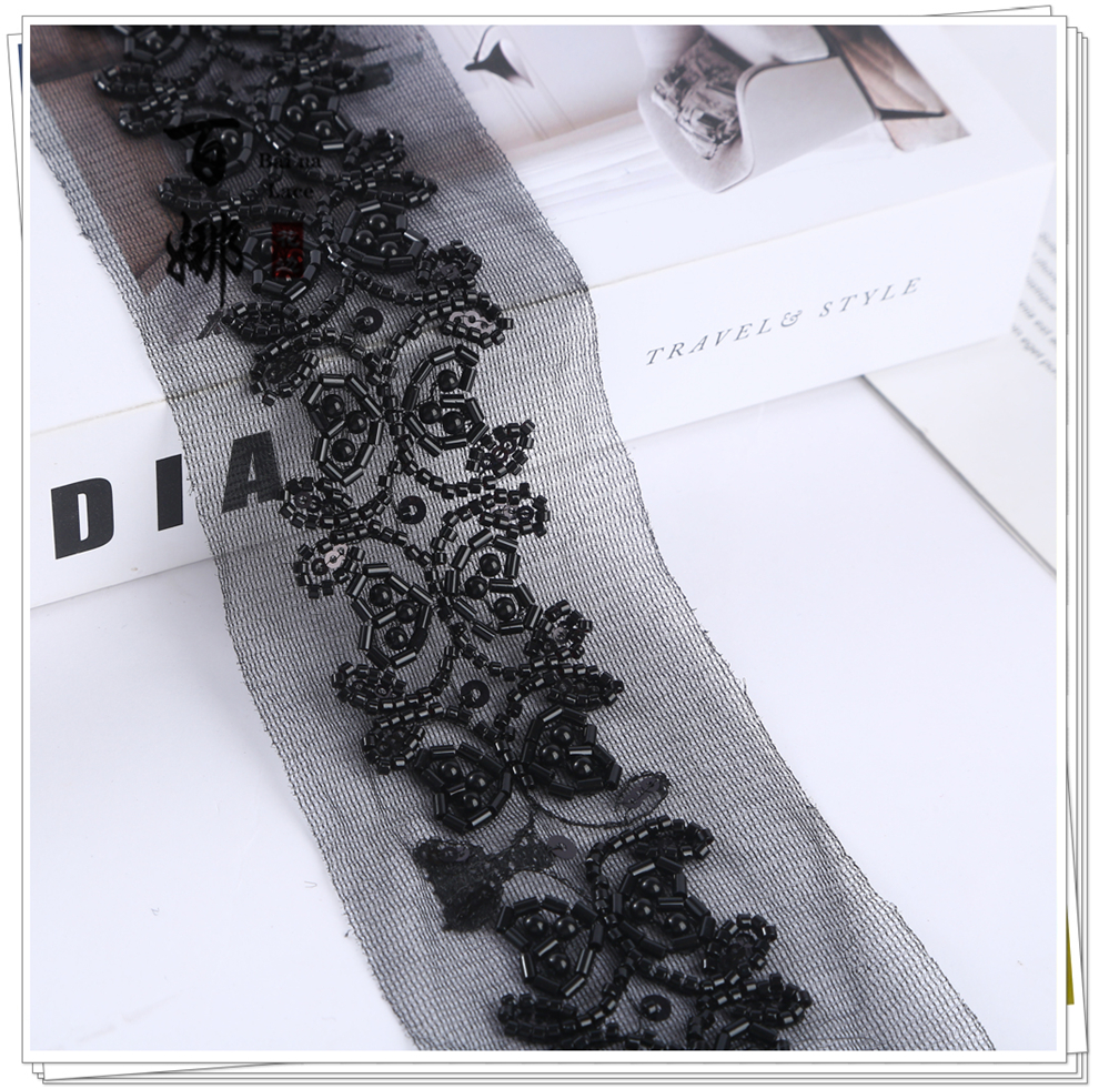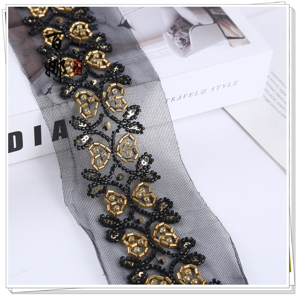 Product Name: 4.6 cm Wide Beaded Tube with Dense Lace Weaving - Wholesale of Garment and Wedding Dress Decorative Netting Lace Trim