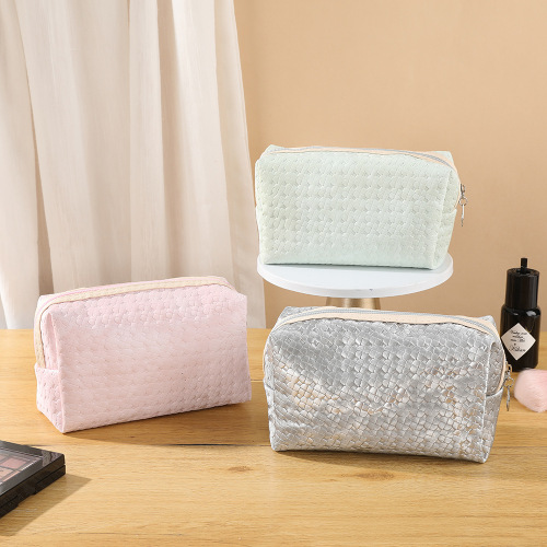 cross-border pu woven pattern cosmetic bag good-looking fashion portable four-leaf octagonal bag fake travel portable toiletry bag