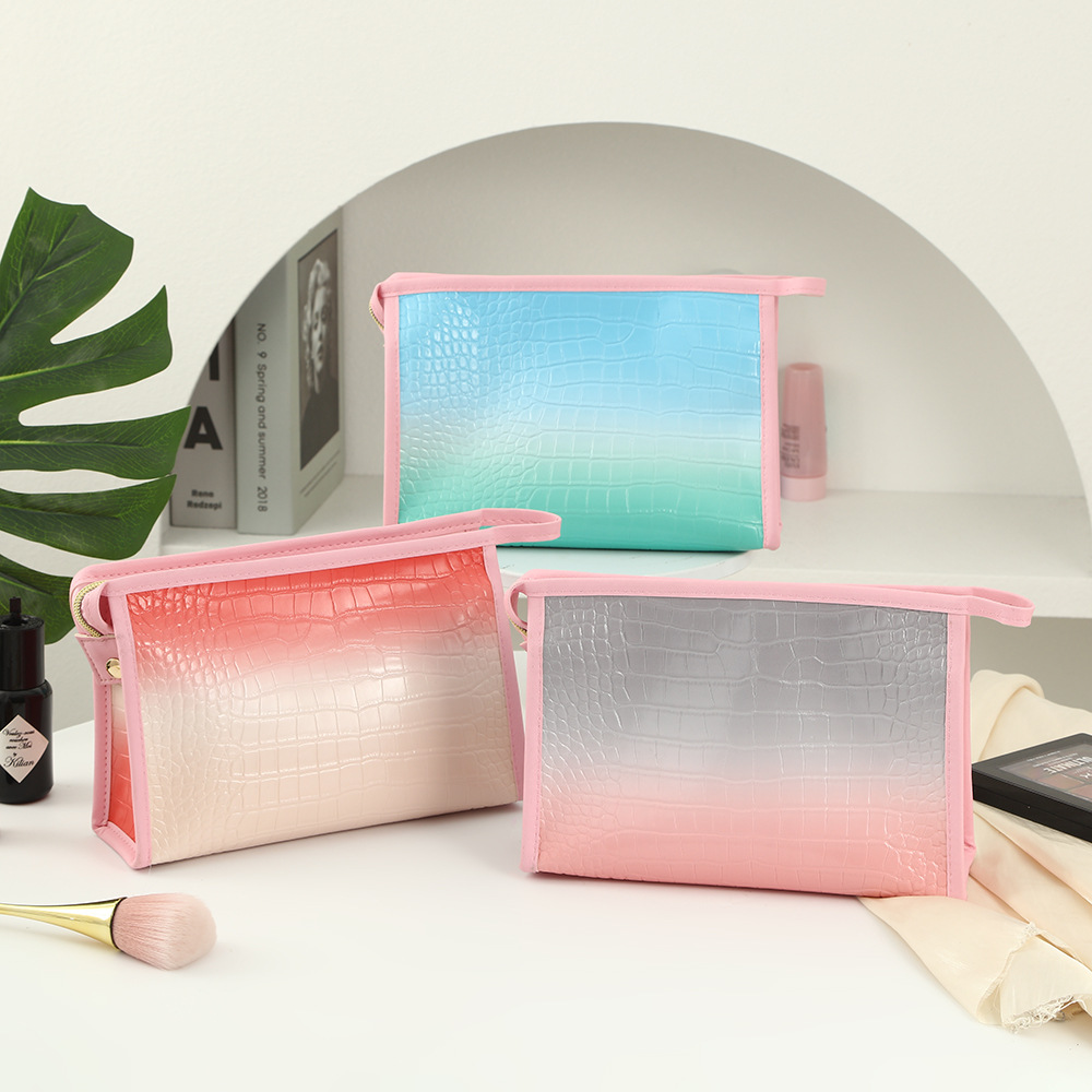 new crocodile pattern waterproof wash bag gradient hand pu cosmetic bag large capacity portable briefcase cosmetic bag