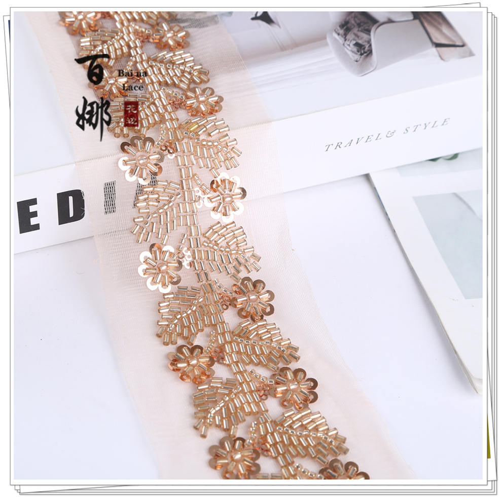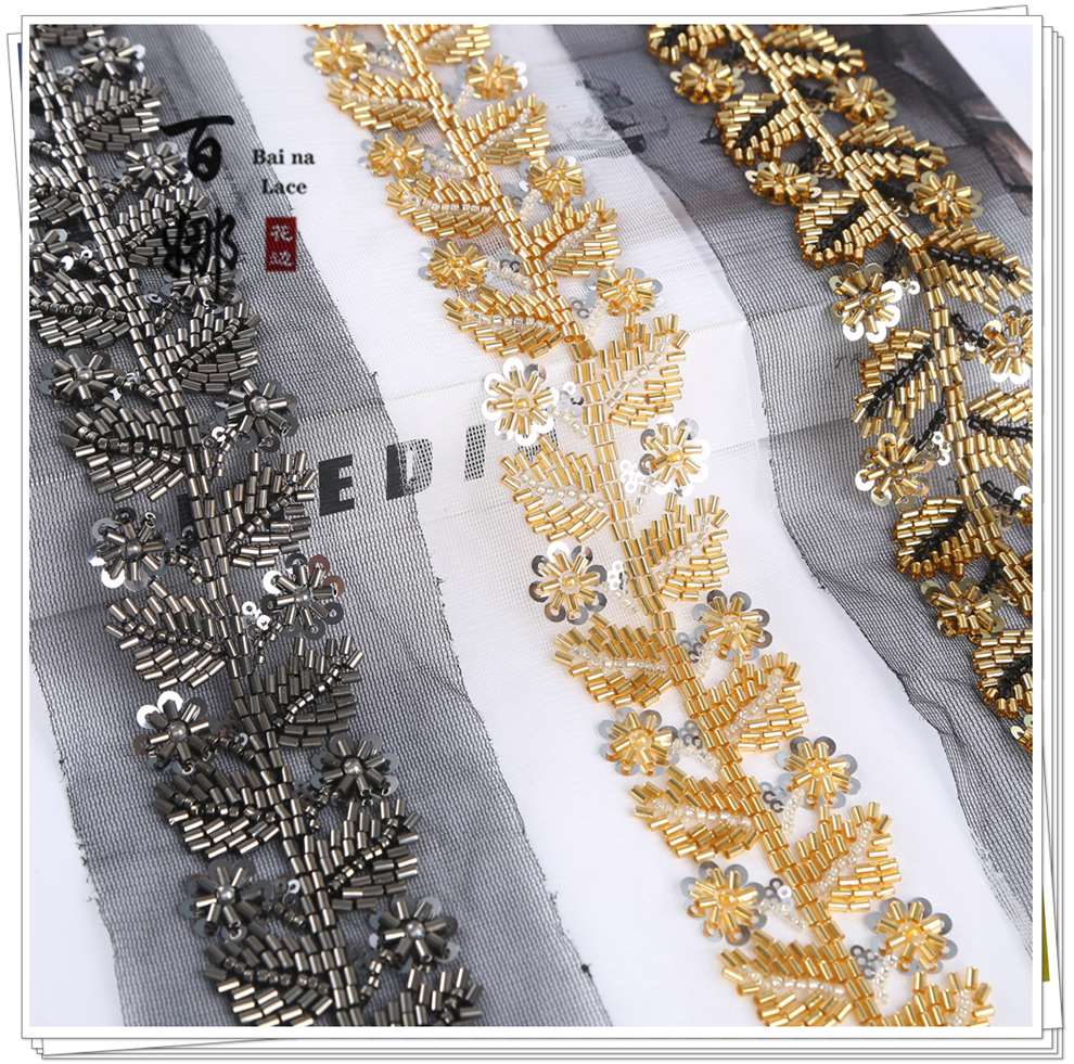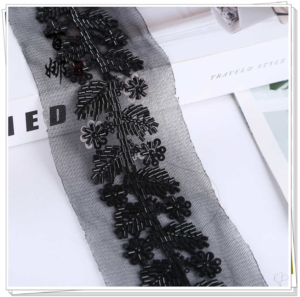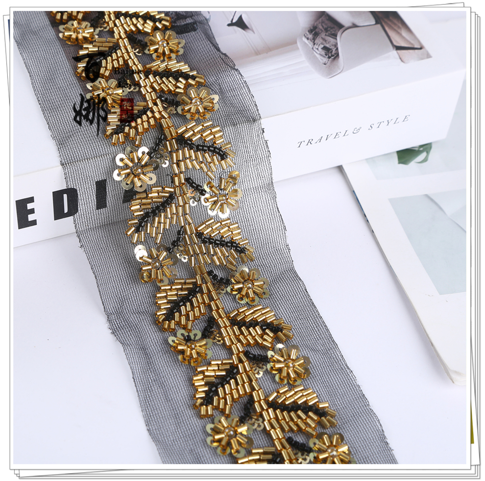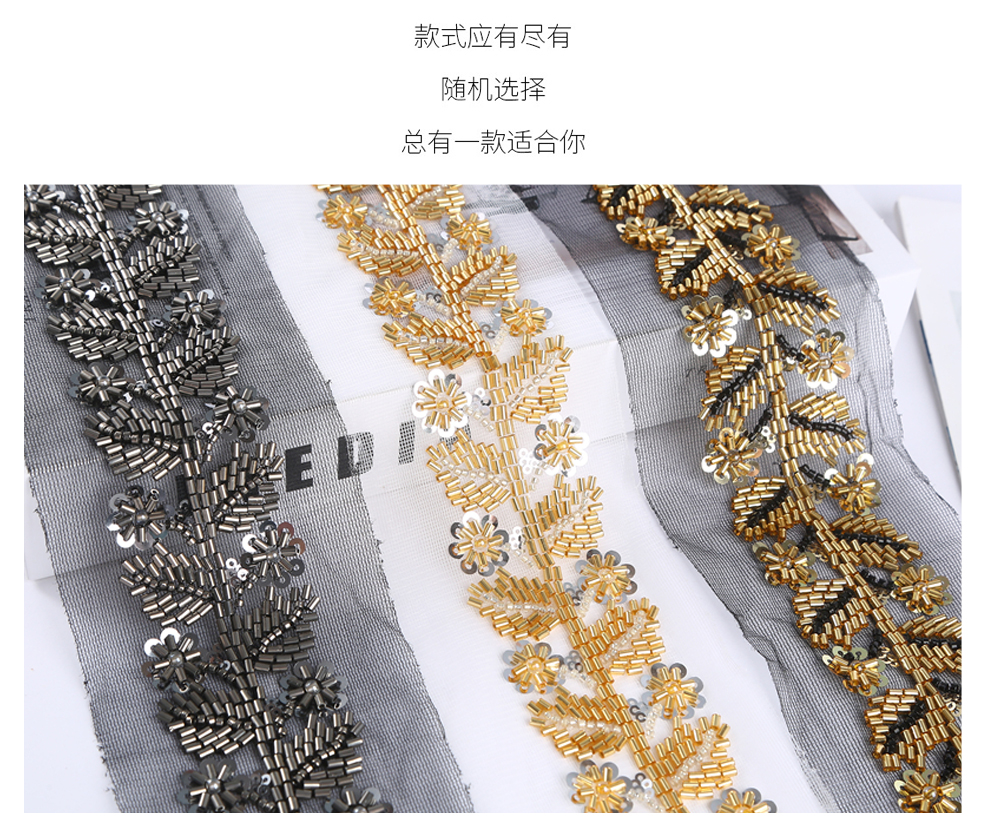Product Name: Net Shade Base Leaf Shape Rice Bead Machine Embroidery Edge Headscarf Stage Dress Open-front Hanfu Collar Decorative Accessory