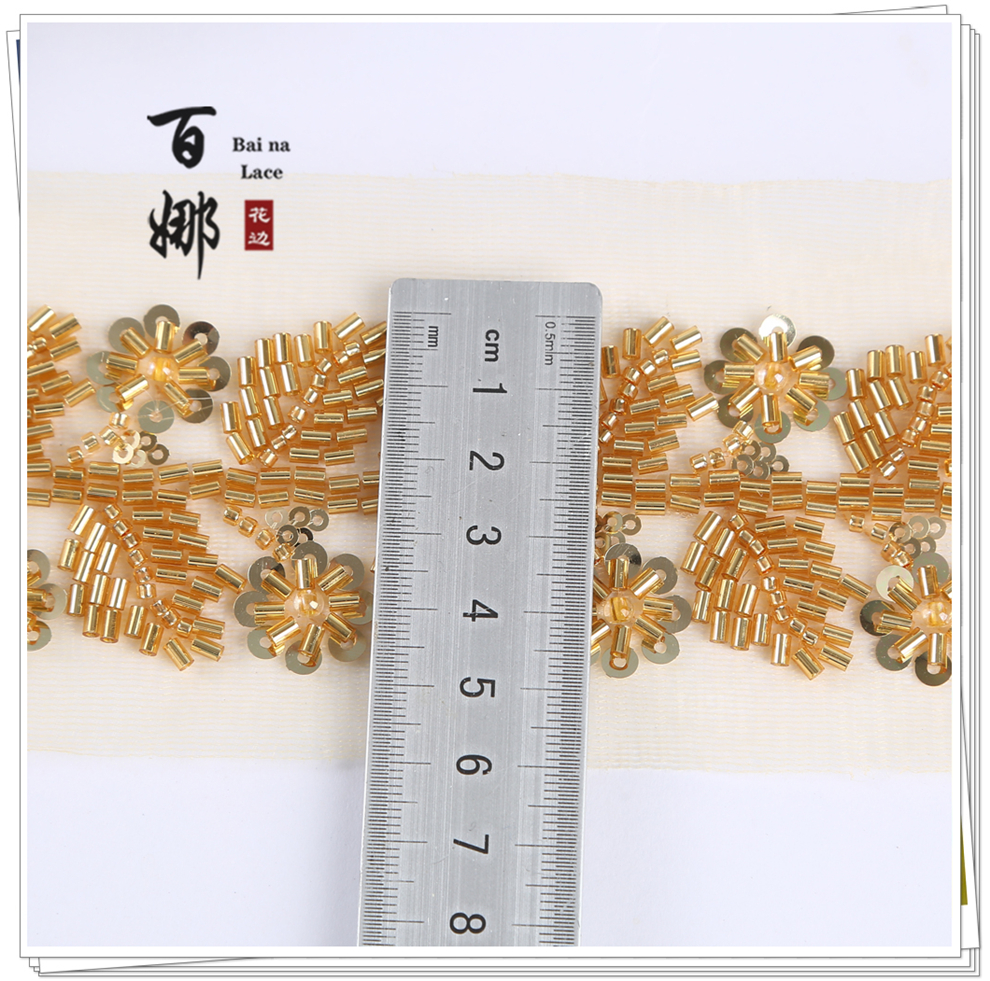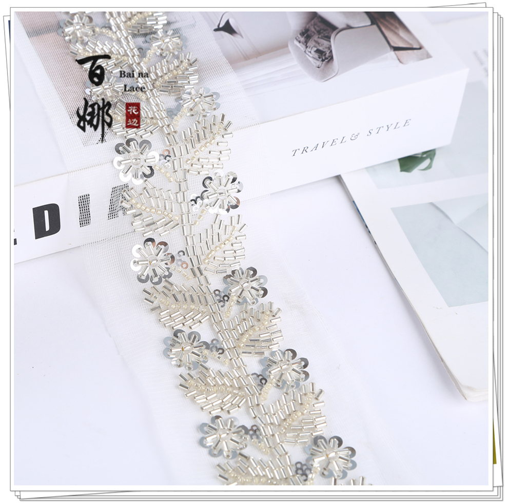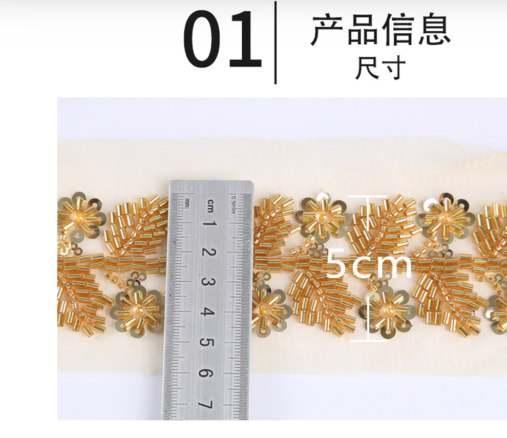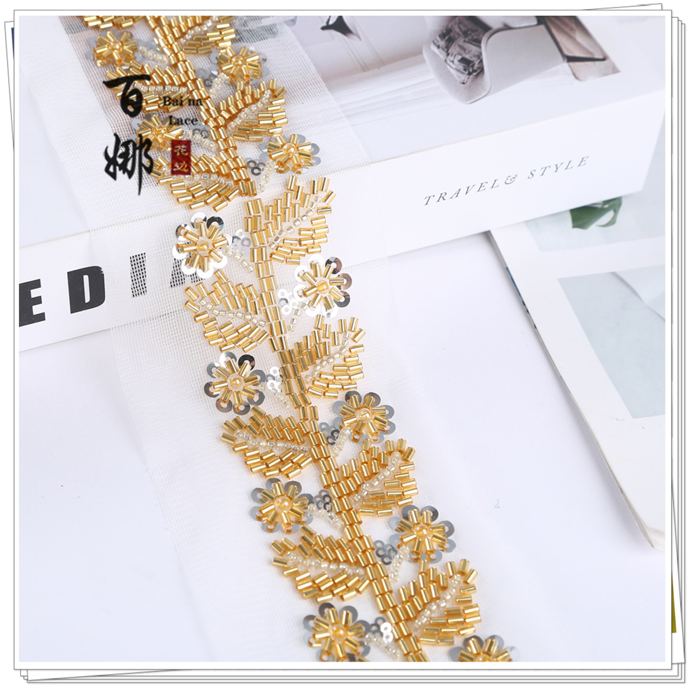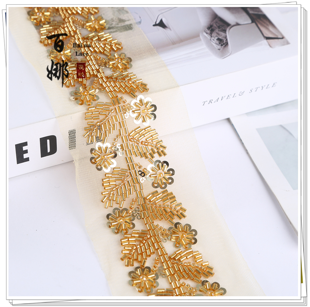 Product Name: Net Shade Base Leaf Shape Rice Bead Machine Embroidery Edge Headscarf Stage Dress Open-front Hanfu Collar Decorative Accessory