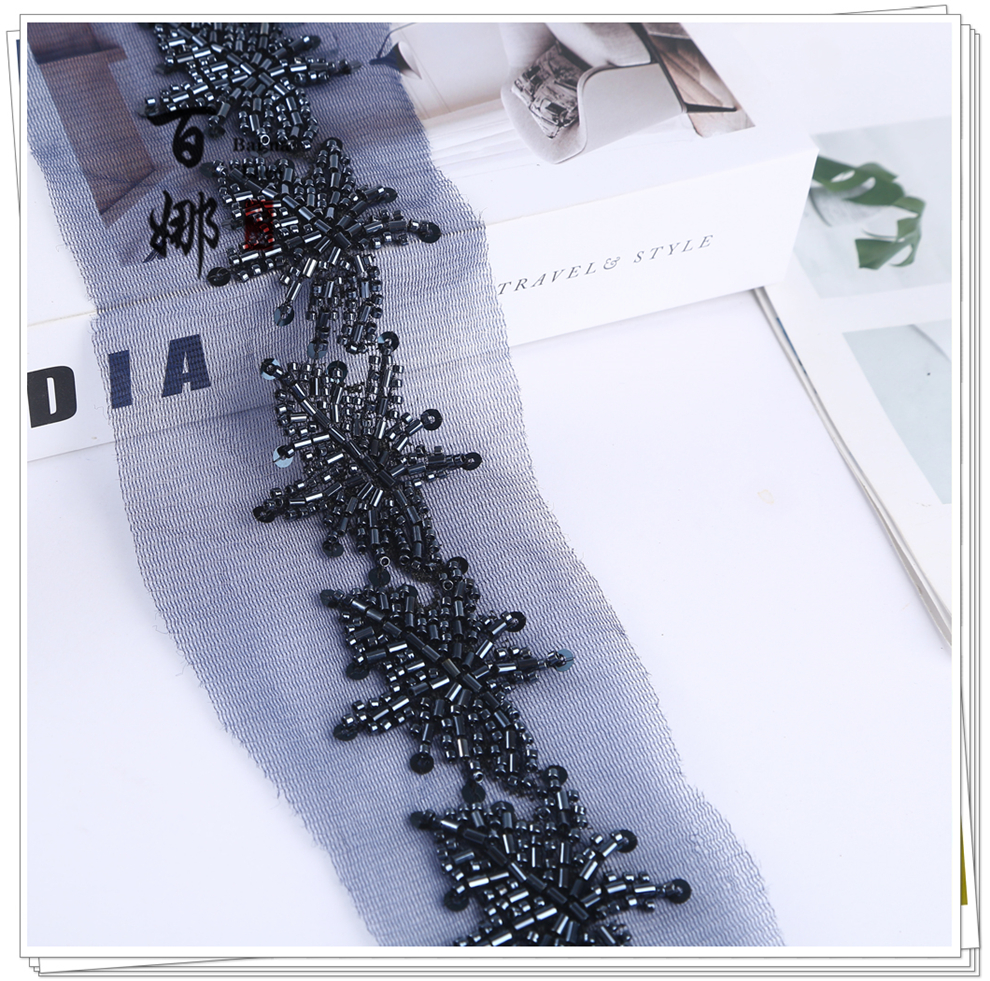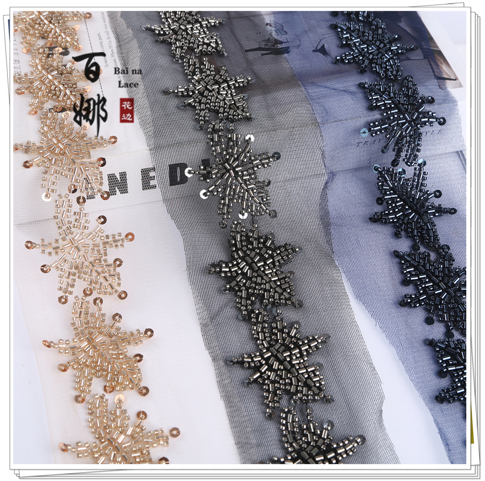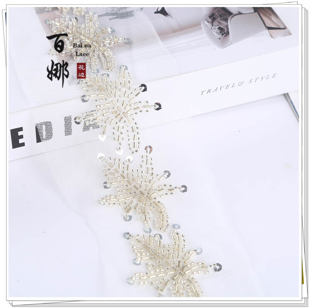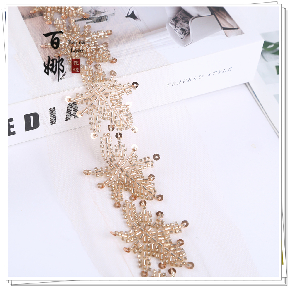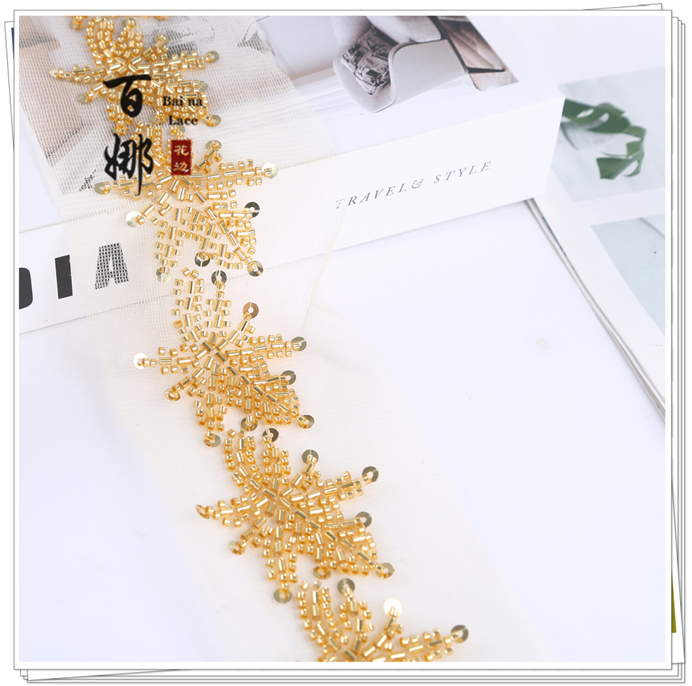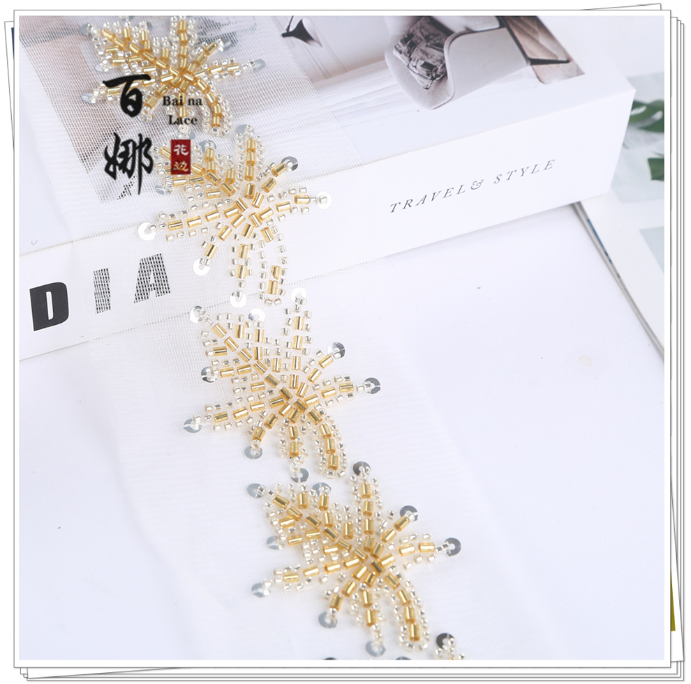 Product Name: Beading Lace Handcraft DIY Material Hanfu Wedding Accessories - Petal Heavywork Hooked Needle Beading Edge Manufacturer Direct Sales