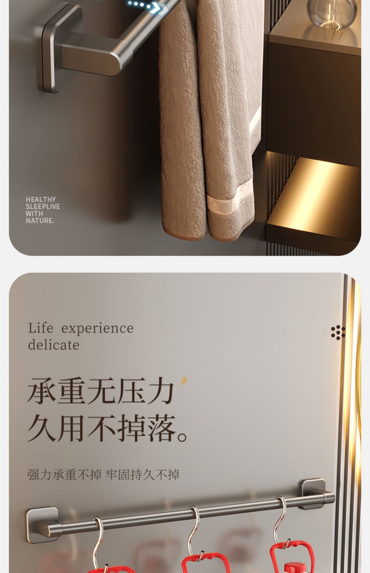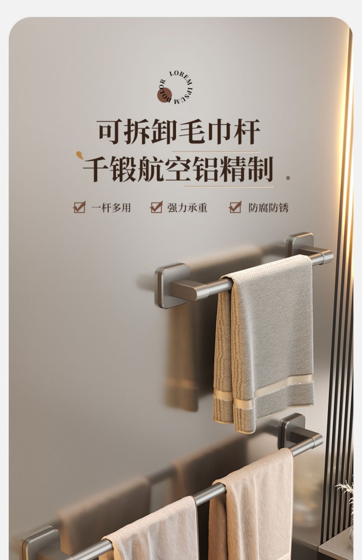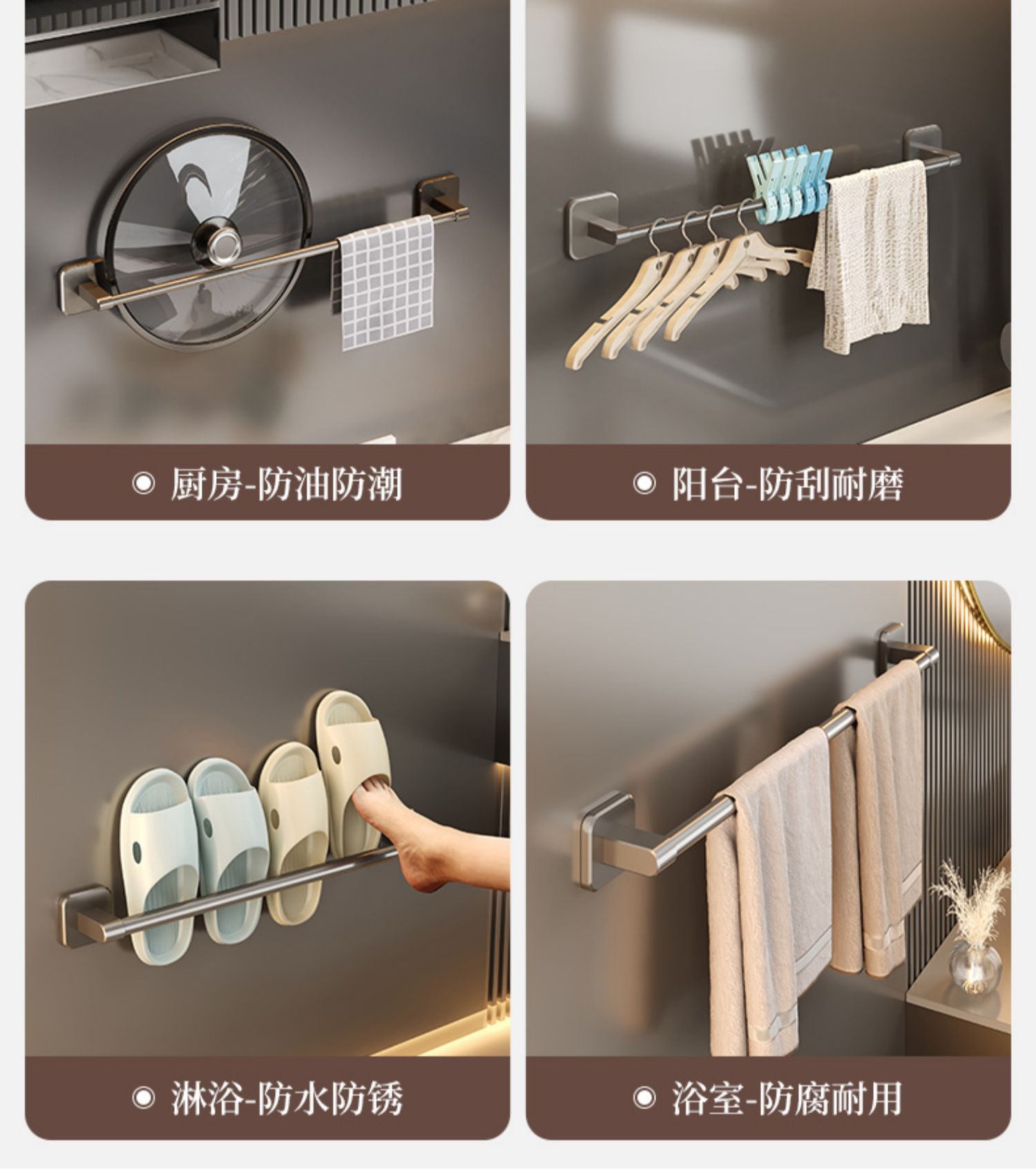[gun gray] 70cm square bottom double rod (no trace stickers installation)