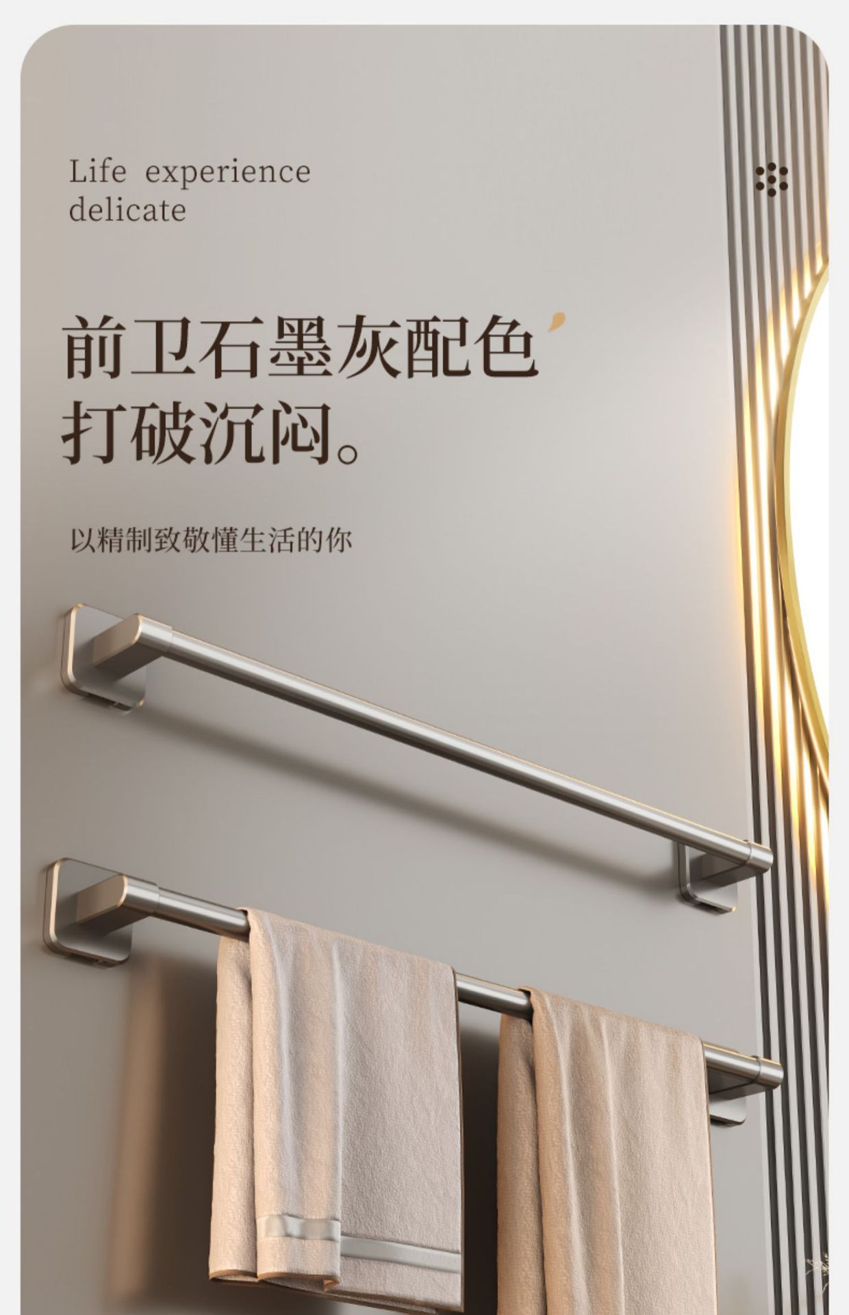 [gun gray] 50cm square bottom single rod (no trace stickers installation)