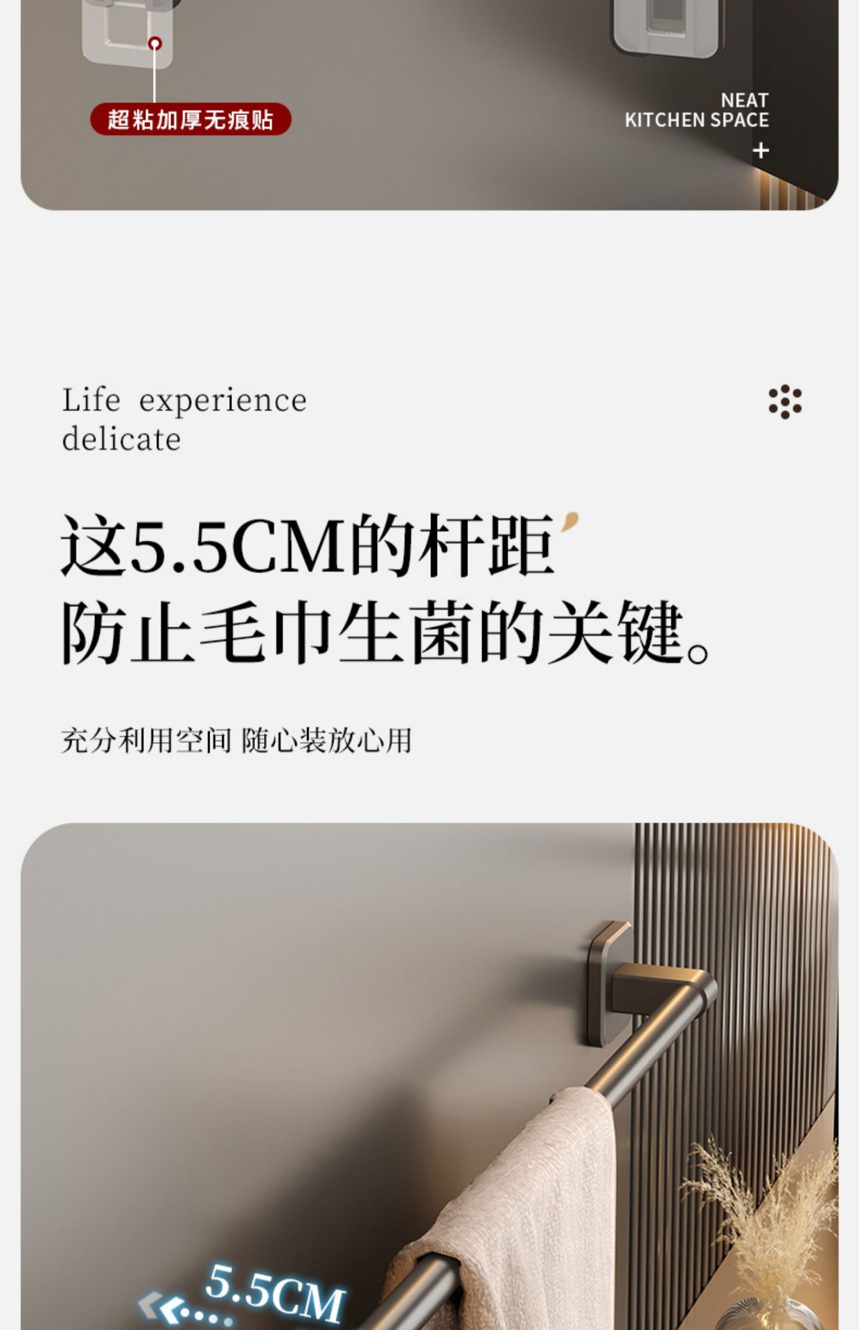 [gun gray] 60cm square bottom double rod (no trace stickers installation)