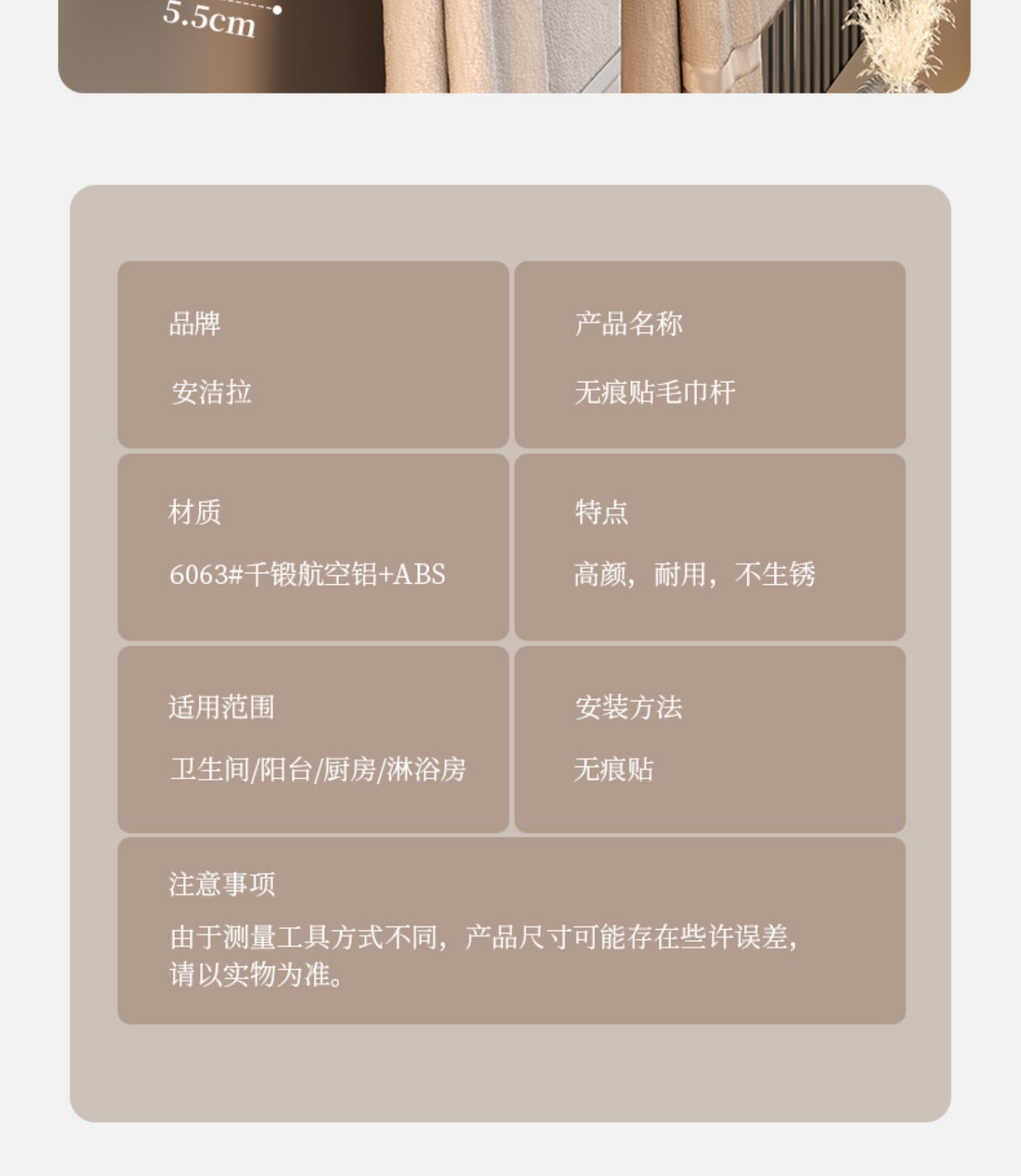 [elegant white] 40cm square bottom single rod (no trace stickers installation)