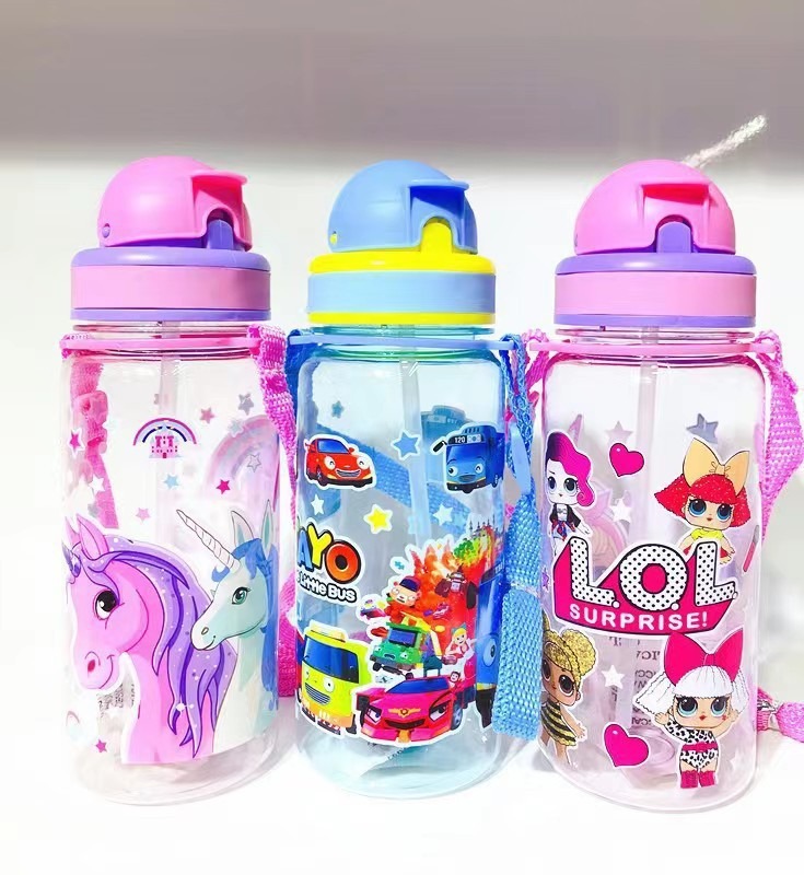 children's straw water bottle water cup cup with straw creative cartoon straw sports kettle lanyard water cup cup with straw