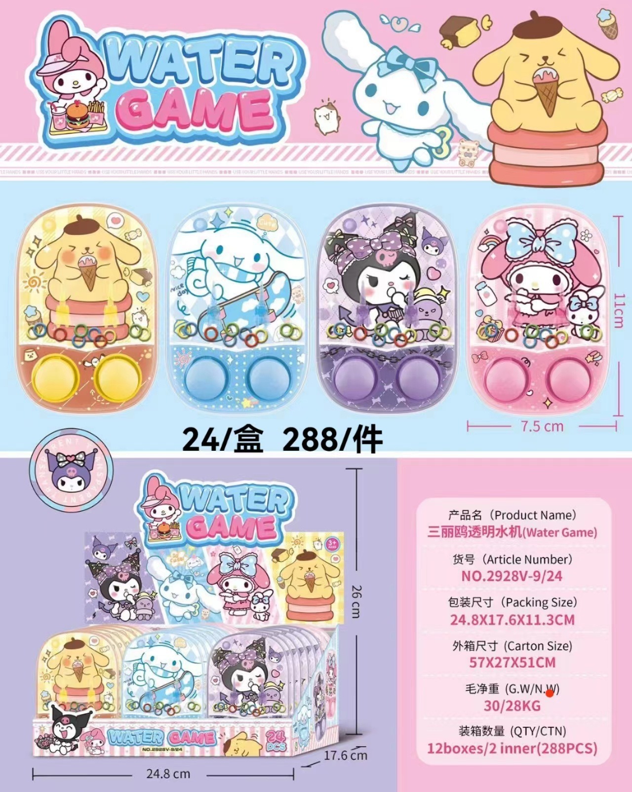 new 2928 sanrio family throw the circle water machine children's educational toys press handheld game machine