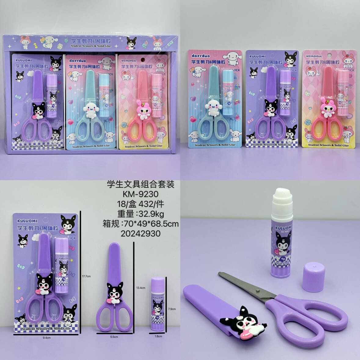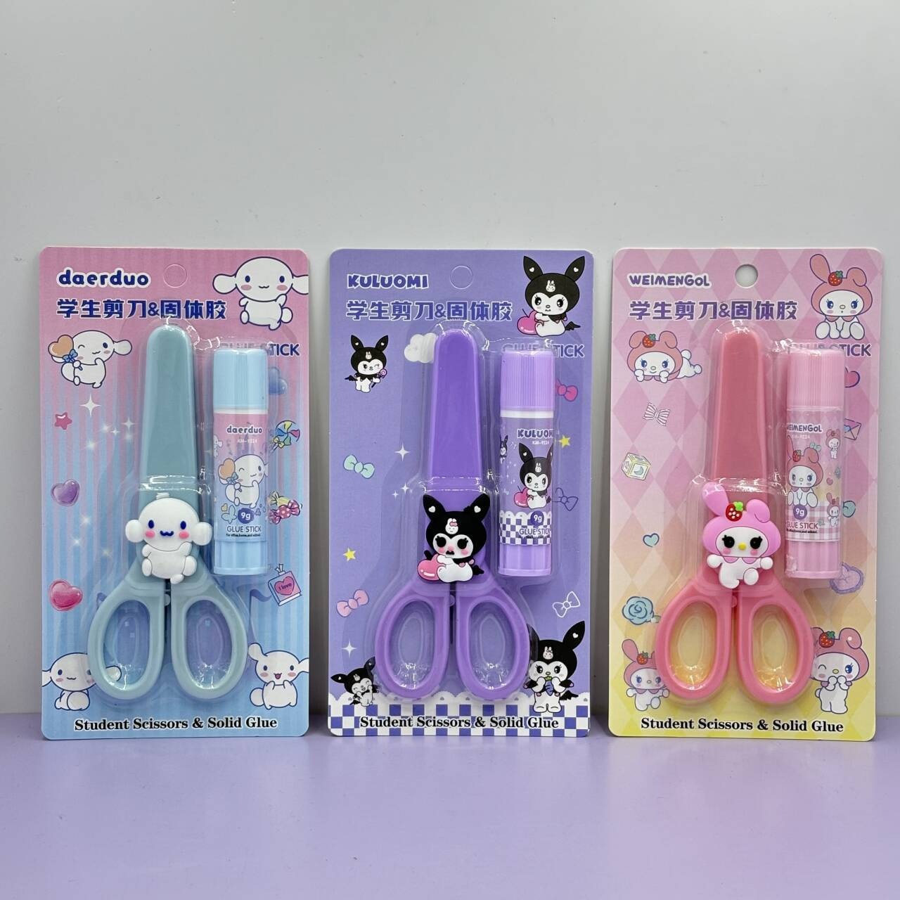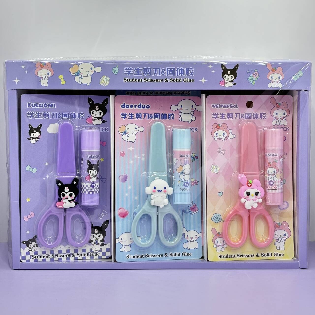 9230 New Cute Creative Cartoon Student Stationery Combination Suit Scissors Solid Glue Two-Piece Set Office Supplies