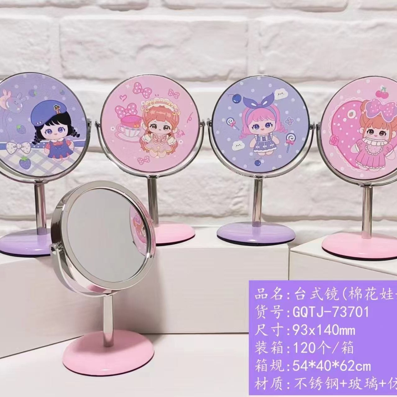 New Cartoon Cute Desktop Desktop Makeup Mirror Girl Heart Bedroom Makeup Mirror Cute Ornaments Mini Single-Sided Mirror