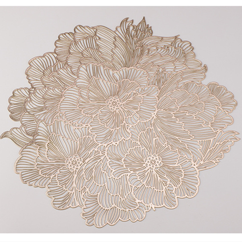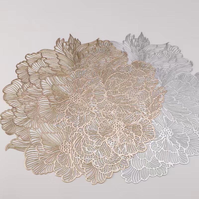 round flower overlapping pvc gilding placemat non-slip heatproof dining table cushion waterproof and oil-proof household hollow gold and silver color 中文版