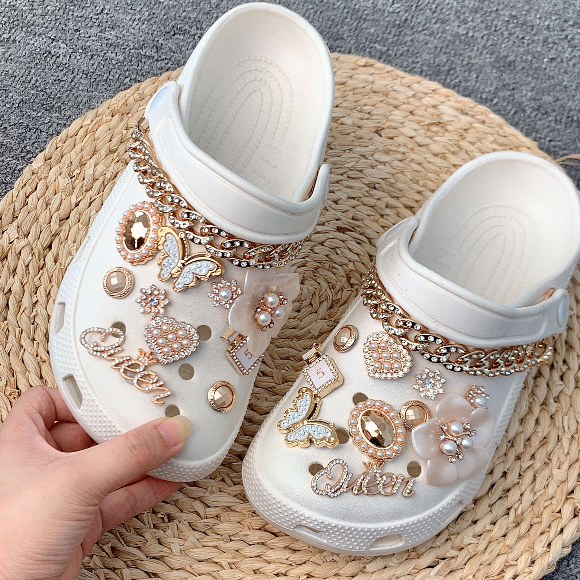 a pair of rhinestone chains