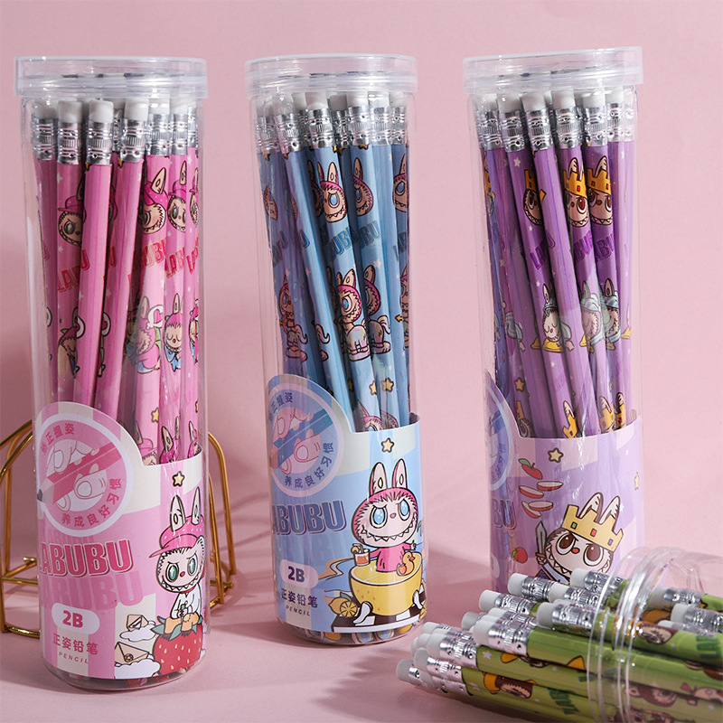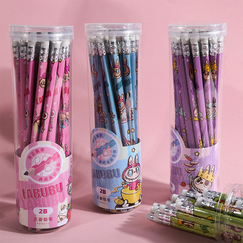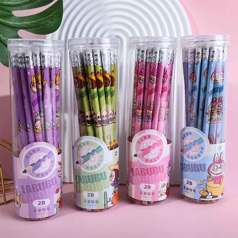 New Automobiles Curtain Cloth 30 PCs Bottled Pencil Cartoon 2B Pencil Cute Triangle Pole Primary School Student Sketch Stationery Wholesale